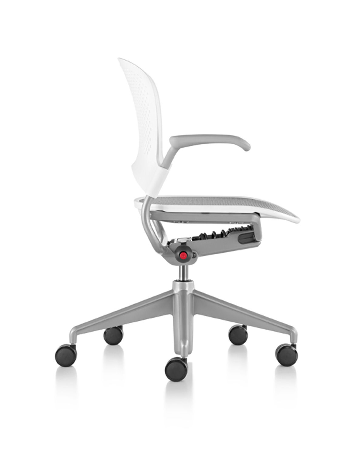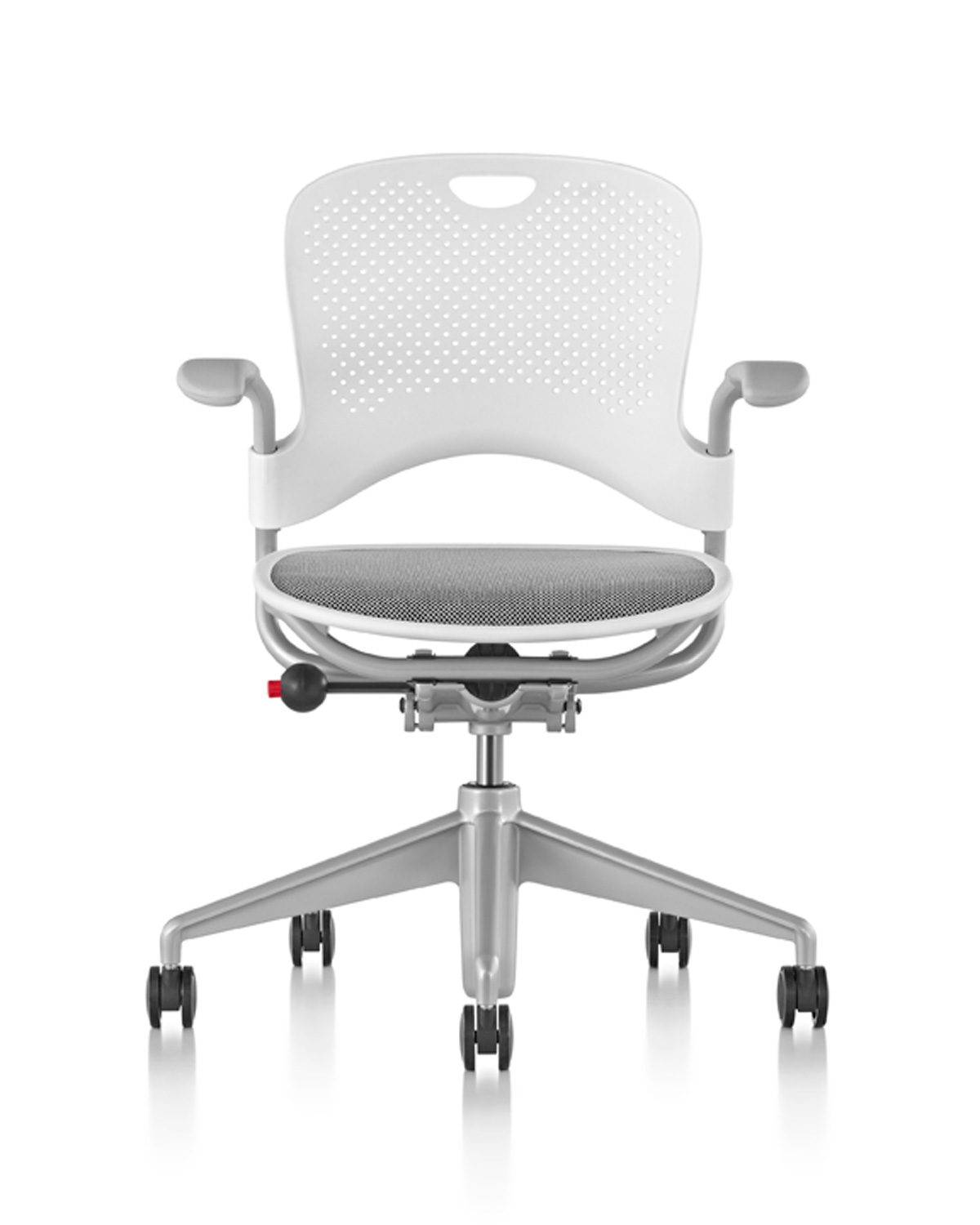 The Caper Multipurpose Chair from Herman Miller delivers casual comfort anywhere with its swivel, tilt, and height controls. Perforated holes in the polypropylene back and seat allow the body to breathe, while casters provide smooth mobility, so the chair can be used in a variety of spaces easily. An optional FLEXNET seat uses advanced suspension materials to minimize pressure points and keep you comfortable longer.