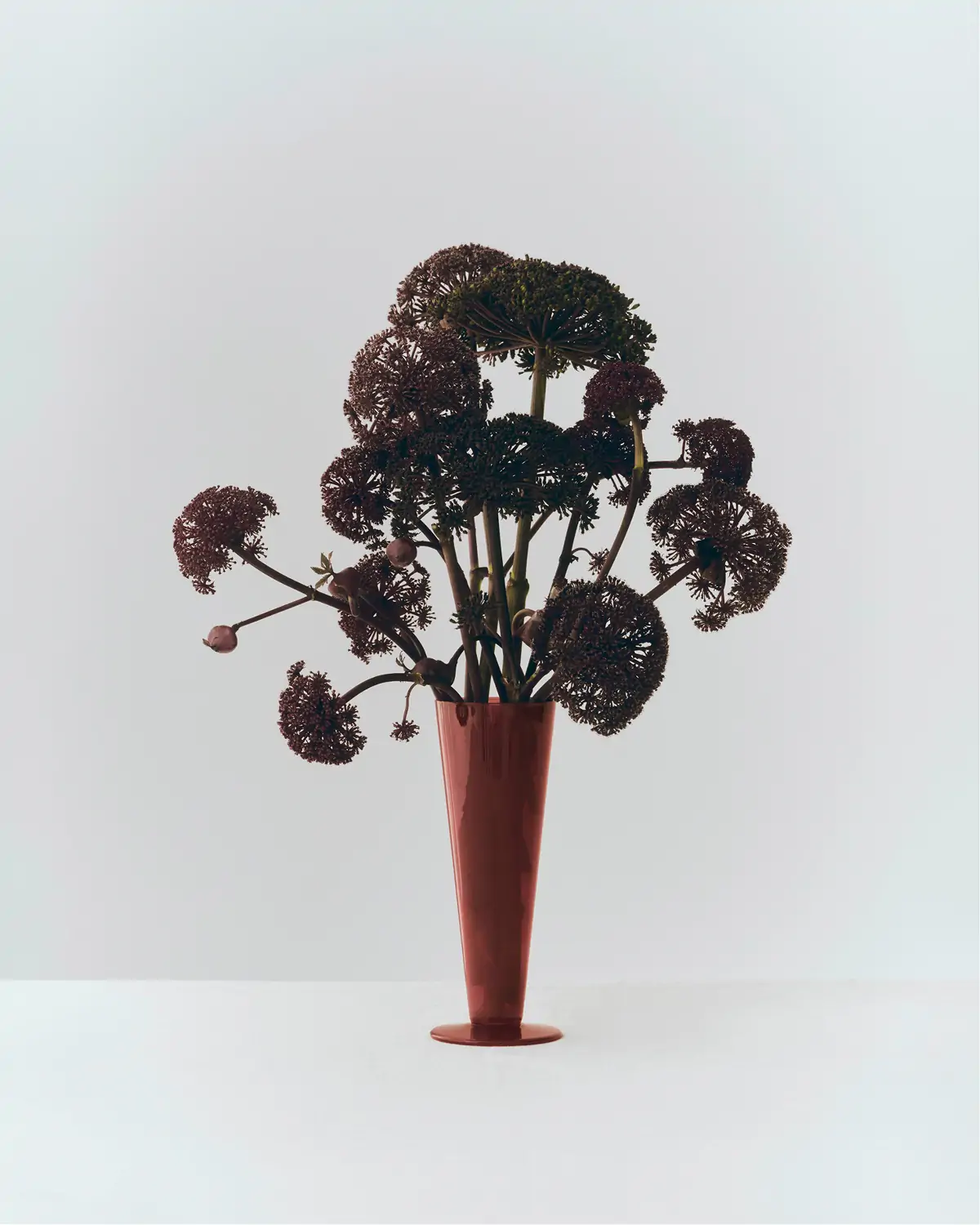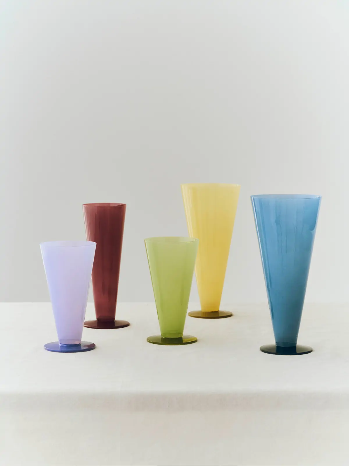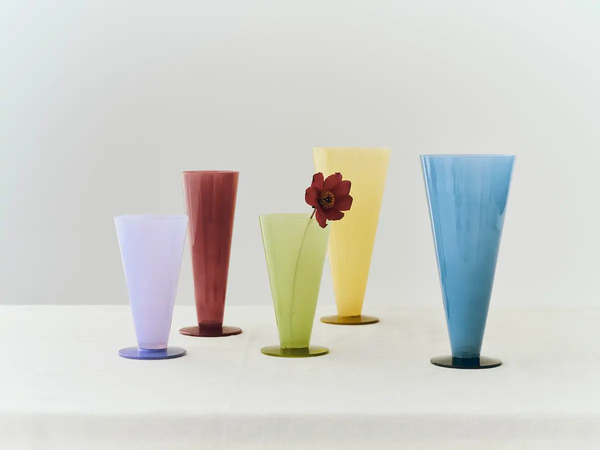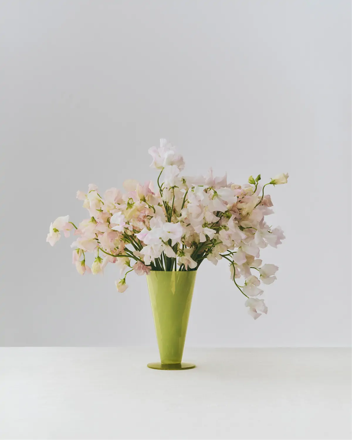 Featuring a clean silhouette with angled sides, the Conical Vase is crafted from soda-lime glass in a hand-painted, two-coloured tone-in-tone finish. Available in different size and colour options, it is ideal for displaying single stems, hand-picked wildflowers, or simple floral arrangement.