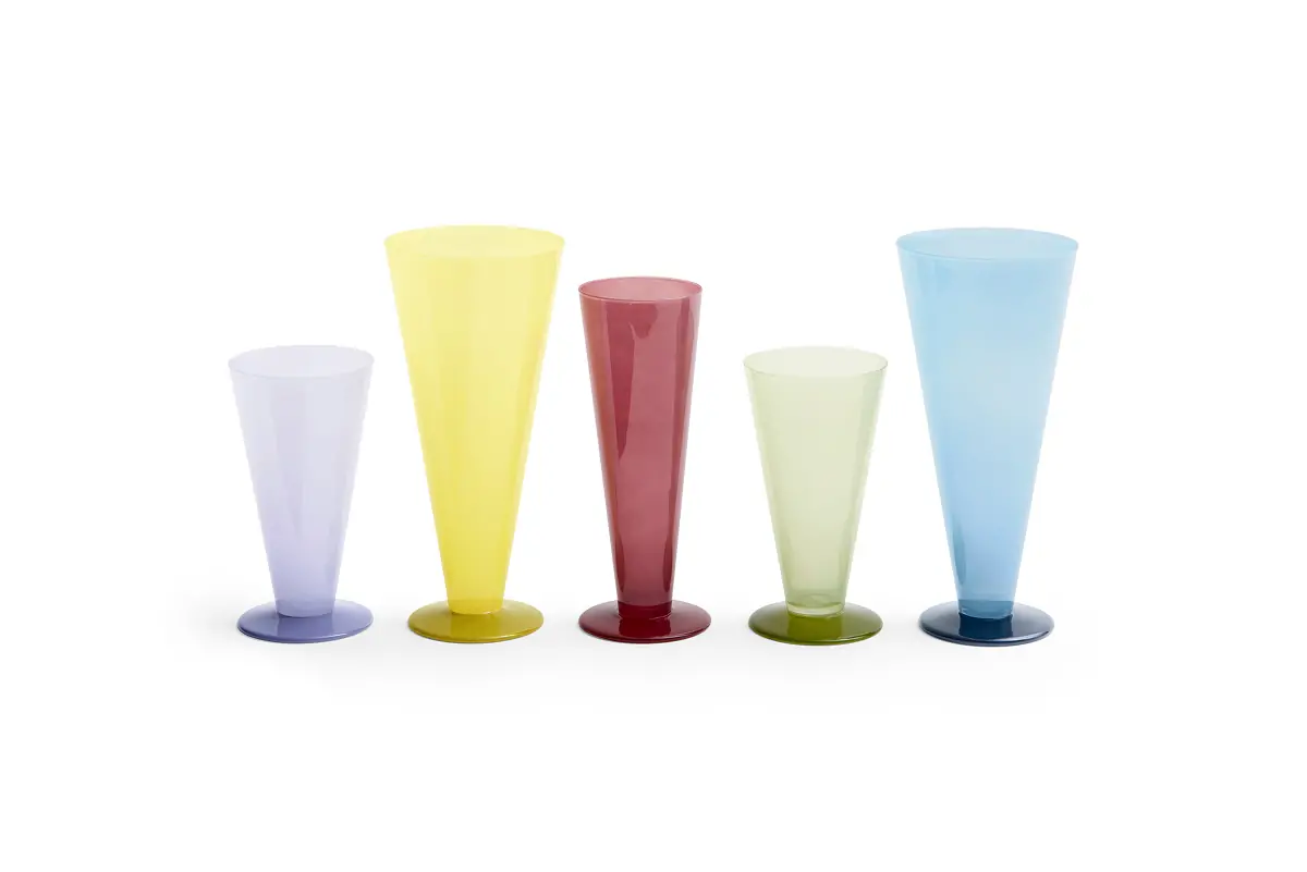 HAY’s Conical vase pairs a smooth, upward-flaring silhouette with playful colour combinations to create a beautiful home for your flowers. Made partly from recycled materials, the glass vase displays both abundant bouquets and slender single branches with effortless elegance. For a true burst of colour, try mixing and matching several Conical vases in different shades or combine them with your other favourite HAY vases.