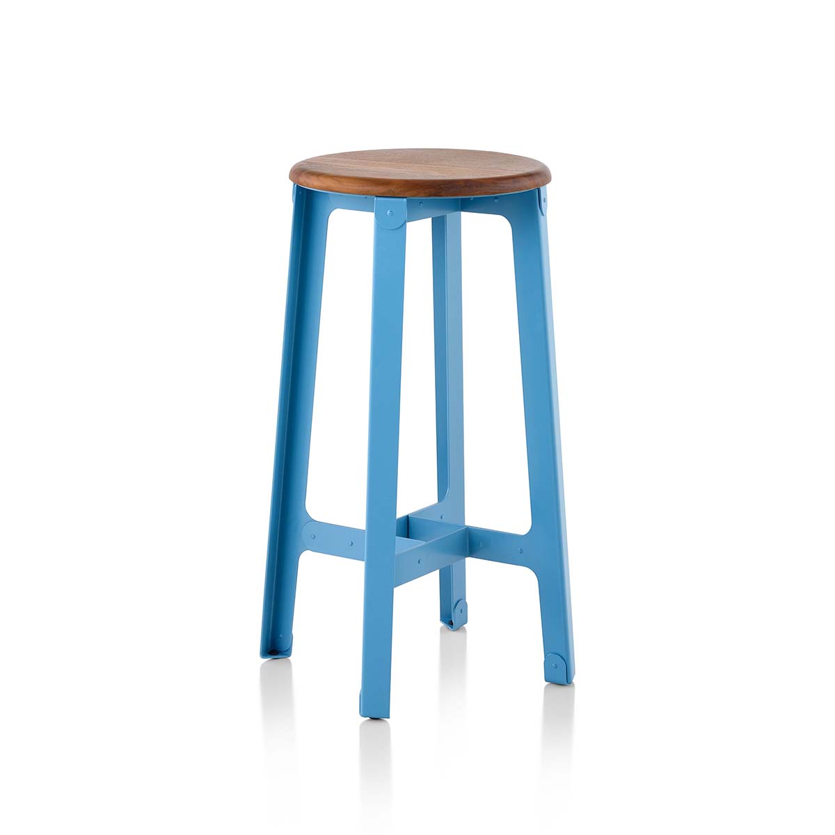 Constructed from laser-cut, folded steel and held together by aluminium aircraft rivets, the Construct Stool is the epitome of honest design. Balanced by a solid wood seat, this industrial feel works effortlessly in a wide range of environments. The powder coat base comes in a range of colours. Available in three heights.