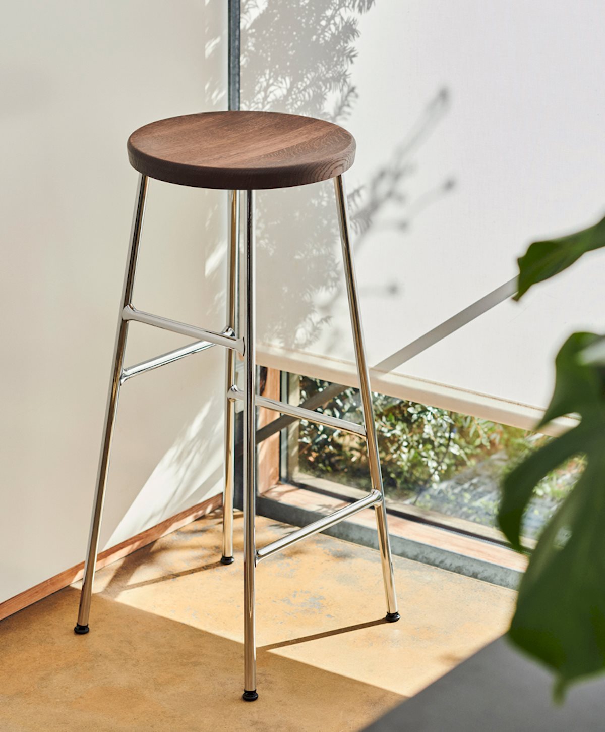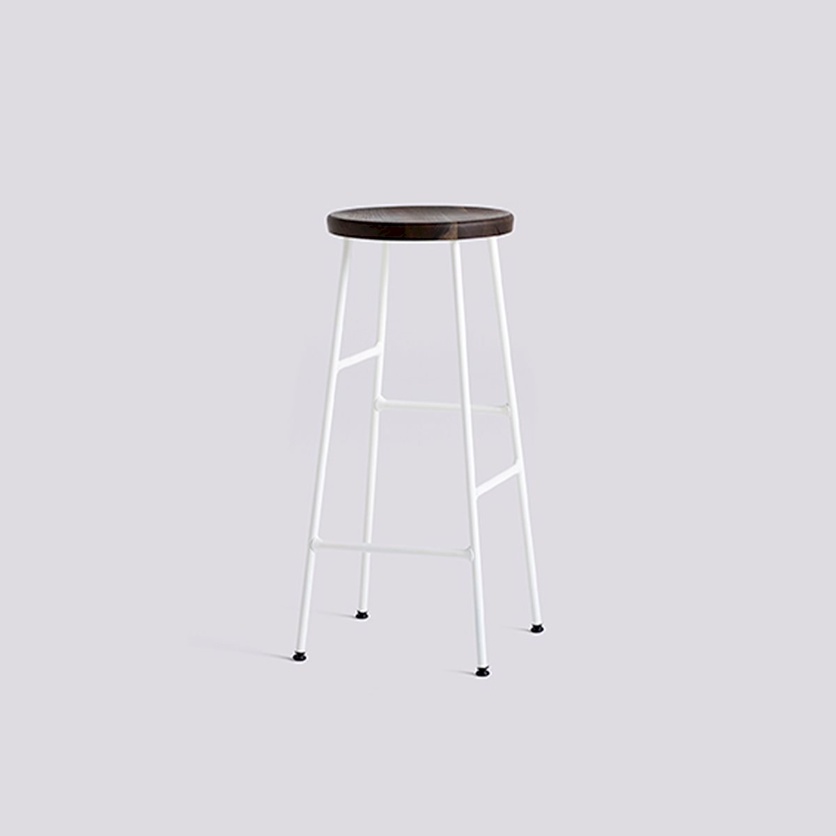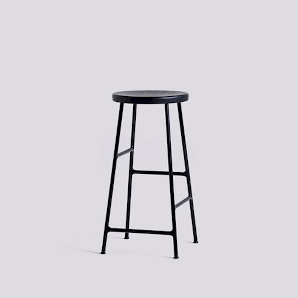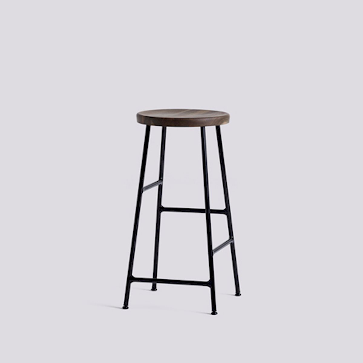 The Cornet Stool from HAY combines innovation and sophistication. Using a unique steel tube construction inspired by bicycle racks, this stool features footrests at different heights on each side to accommodate diverse users. It comes in bar- and counter-heights and features a solid wood seat for a sleek balance of form and function. Choose from various wood finishes and chrome or powder-coated legs to complement any setting, whether office, lounge, or dining space.