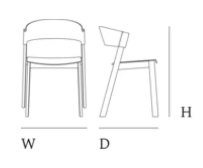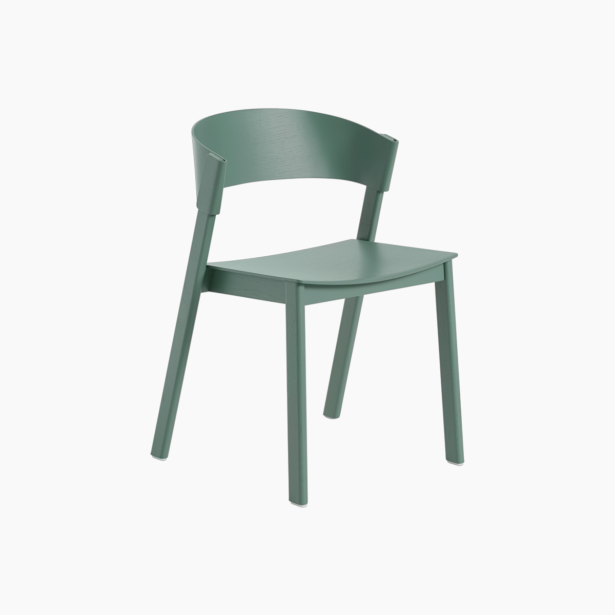The Cover Side Chair from Muuto is crafted with a curved back and a base made of solid wood. Featuring elegantly canted legs and seamless finishing with no visible screws, this wood side chair epitomizes fine woodworking. Stackable for easy storage, this chair is available in a range of colors and finishes and with or without an upholstered seat.