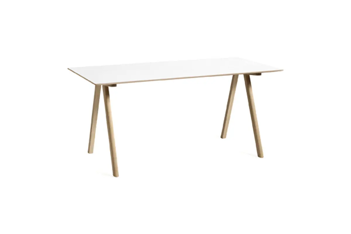 Part of the Copenhague range designed by Ronan and Erwan Bouroullec, the CPH 30 shares the same characteristic angled legs and strong identity that are consistent with the rest of the series, while this variant has a rectangular tabletop. It is available in different sizes, with tabletops and frames in a variety of wood types and materials, offering the possibility to select matching or contrasting combinations. The CPH 30’s versatility and uncluttered design make it ideal for using as a desk, conference table, or dining table in an office context or a private setting.