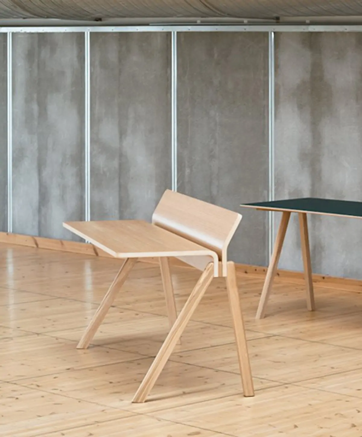 Part of the Copenhague range designed by Ronan and Erwan Bouroullec, the CPH 30 shares the same characteristic angled legs and strong identity that are consistent with the rest of the series, while this variant has a rectangular tabletop. It is available in different sizes, with tabletops and frames in a variety of wood types and materials, offering the possibility to select matching or contrasting combinations. The CPH 30’s versatility and uncluttered design make it ideal for using as a desk, conference table, or dining table in an office context or a private setting.
