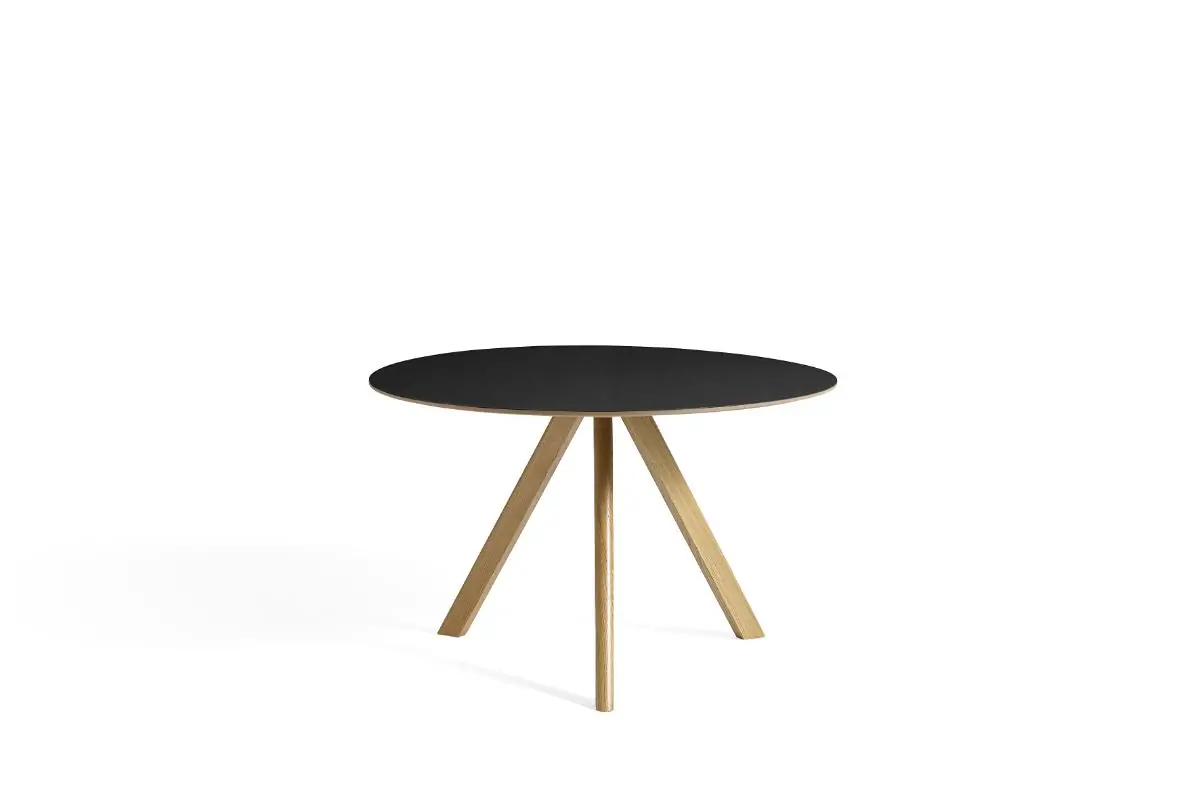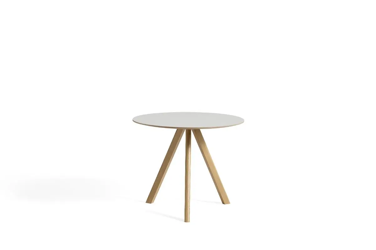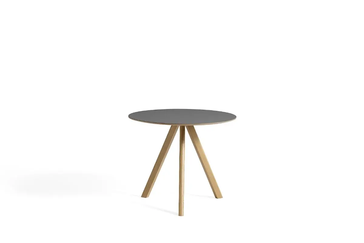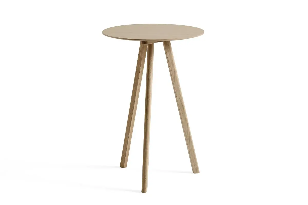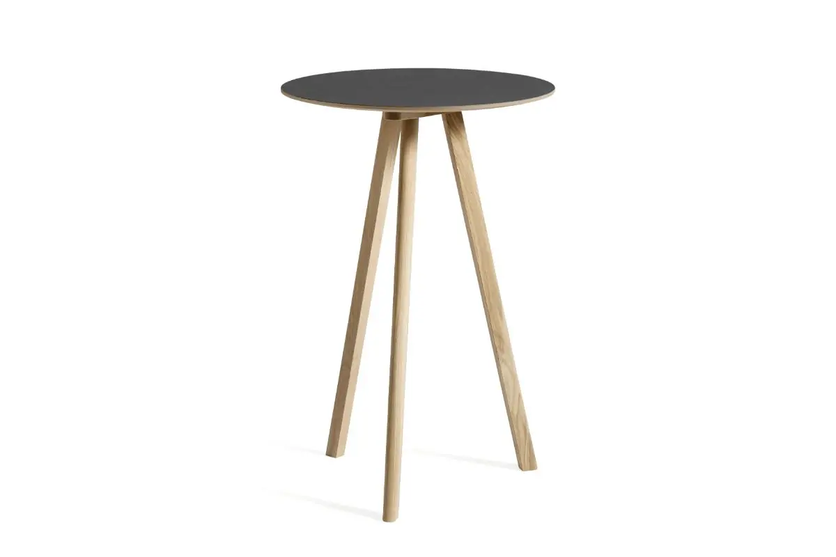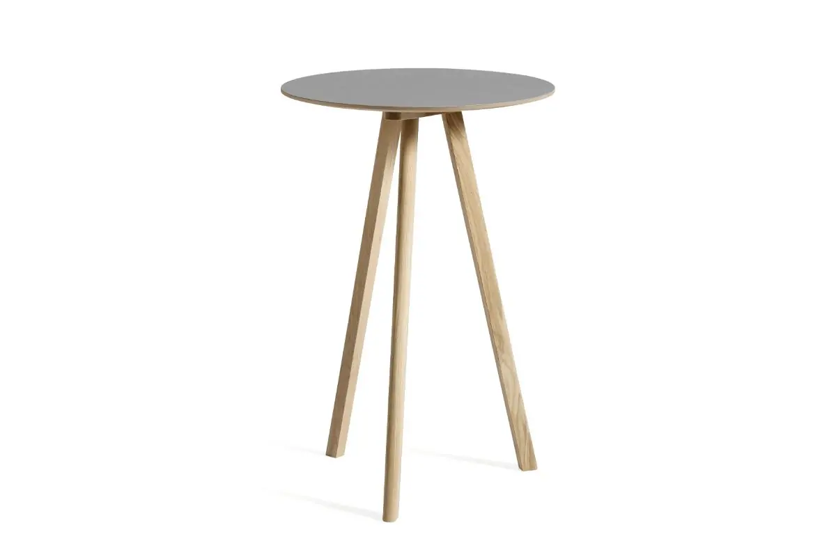Sharing the same characteristic angled legs as the rest of the Bouroullec brothers’ Copenhague range, the CPH 20 table features a round tabletop that softens the engineered expression. The three-legged table frame comes in different sizes and is available with tabletops and frames in a variety of wood types, materials, and colours, with the possibility to select matching or contrasting combinations. Equally suitable for intimate meetings and larger, café-like environments, this versatile table has an ability to blend into private homes as well as public spaces.