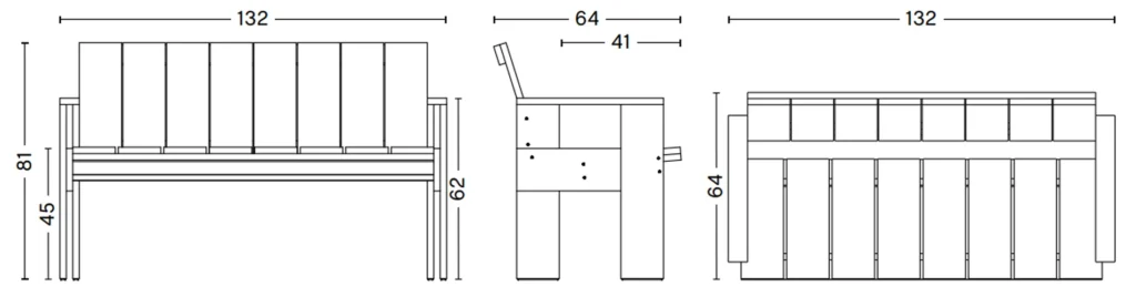 Initially designed to make use of surplus wooden shipping crates by Dutch architect and designer Gerrit Rietveld in 1934, the Crate Collection has been relaunched in a Rietveld Originals x HAY collaboration. Made with respect for the original design, the Crate Dining Bench shares the same precisely balanced proportions and transparent construction to minimise production costs and optimise the assembly process. The classic bench design features a gently sloping back and seat with supportive armrests, its simplicity and spatial design mirroring the designer’s architectural principles – providing functionality and comfort without absorbing space. Crafted in solid pine, with a water-based lacquered finish in different colour options, the Crate Dining Bench is suitable for a wealth of outdoor settings, and can be supplemented with optional seat cushions in selected textiles for extra comfort.