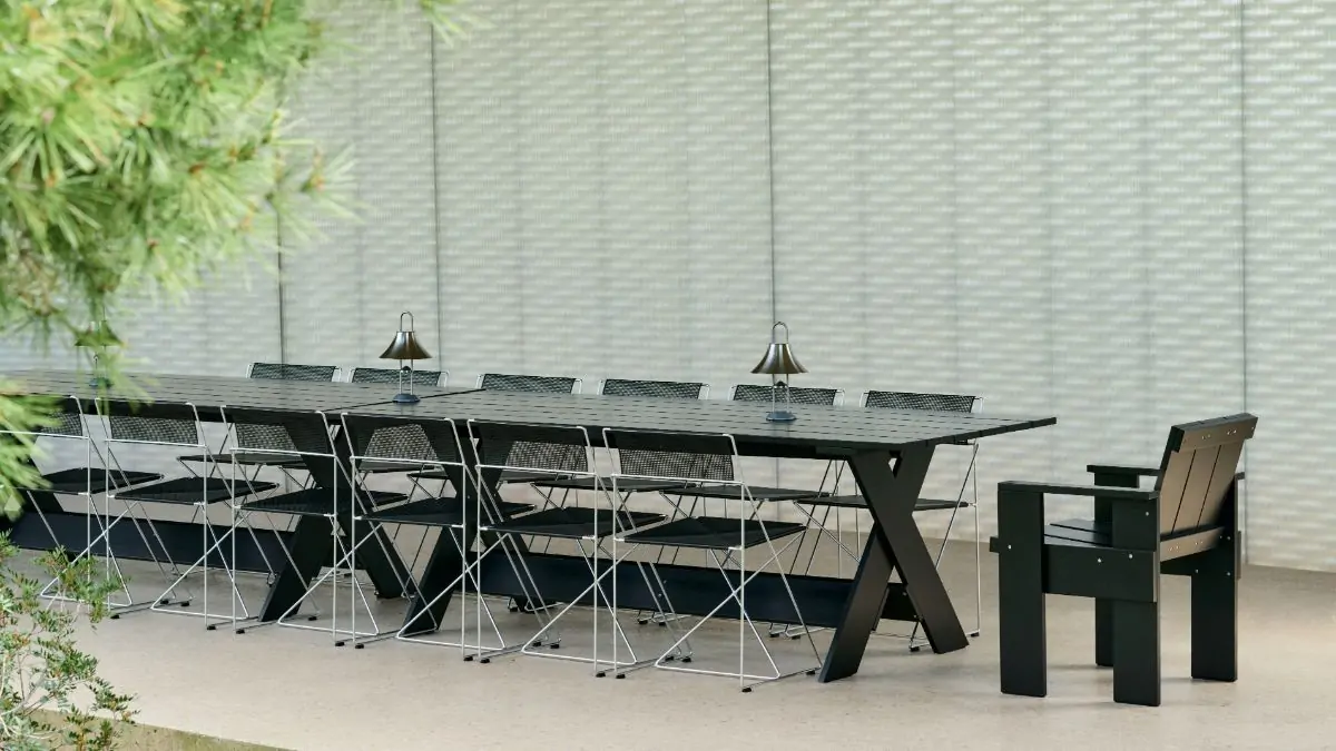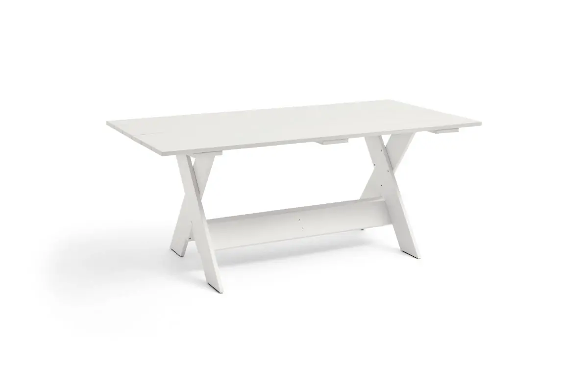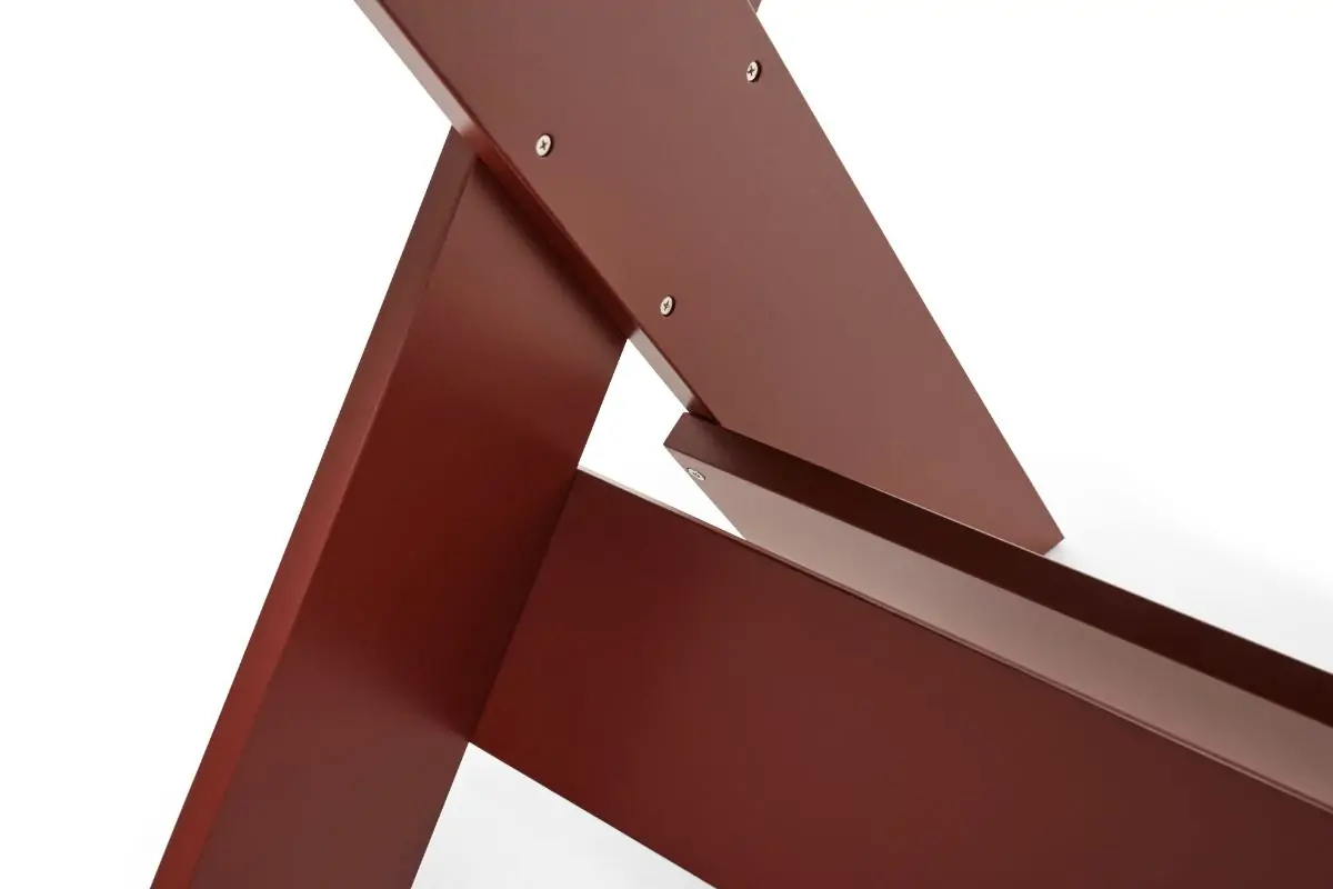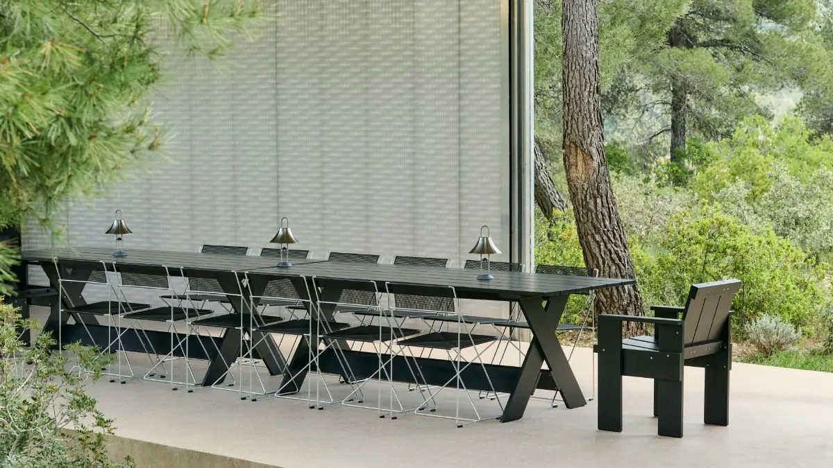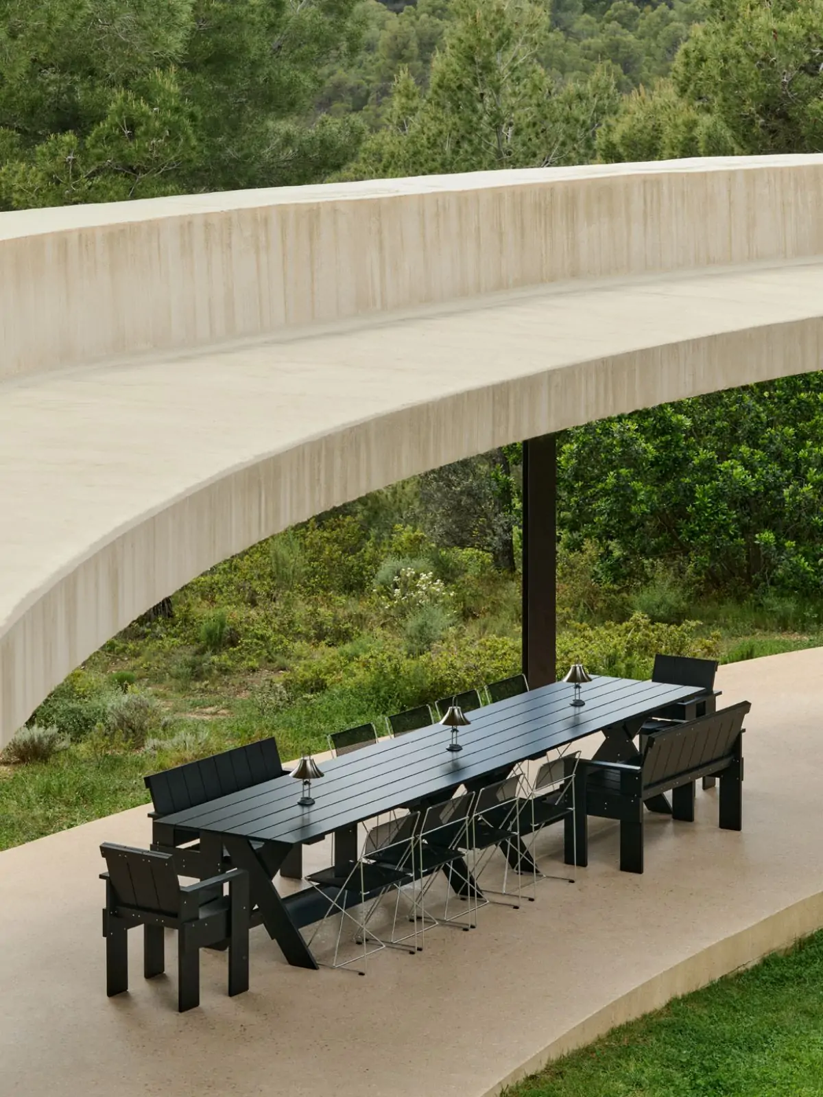 Initially designed to make use of surplus wooden shipping crates by Dutch architect and designer Gerrit Rietveld in 1934, the Crate Collection has been relaunched in a Rietveld Originals x HAY collaboration. Made with respect for the original design, the Crate Dining Table shares the same precisely balanced proportions and transparent construction to minimise production costs and optimise the assembly process. Available in two different lengths, with a rectangular tabletop and diagonal crossbars, the table’s simplicity and spatial design mirrors the designer’s architectural principles – providing functionality and comfort without absorbing space. Crafted in solid pine, with a water-based lacquered finish in different colour options, the Crate Dining Table is suitable for a wealth of outdoor settings.