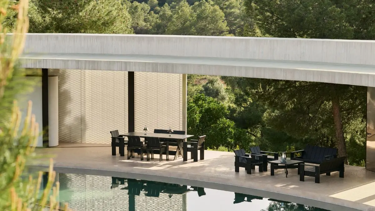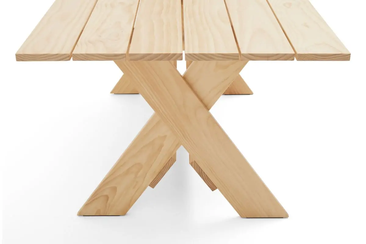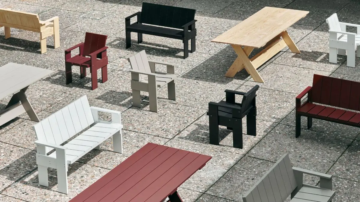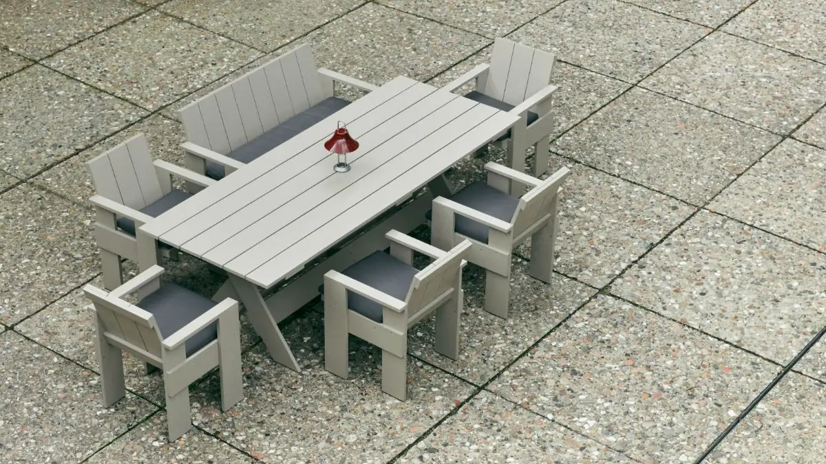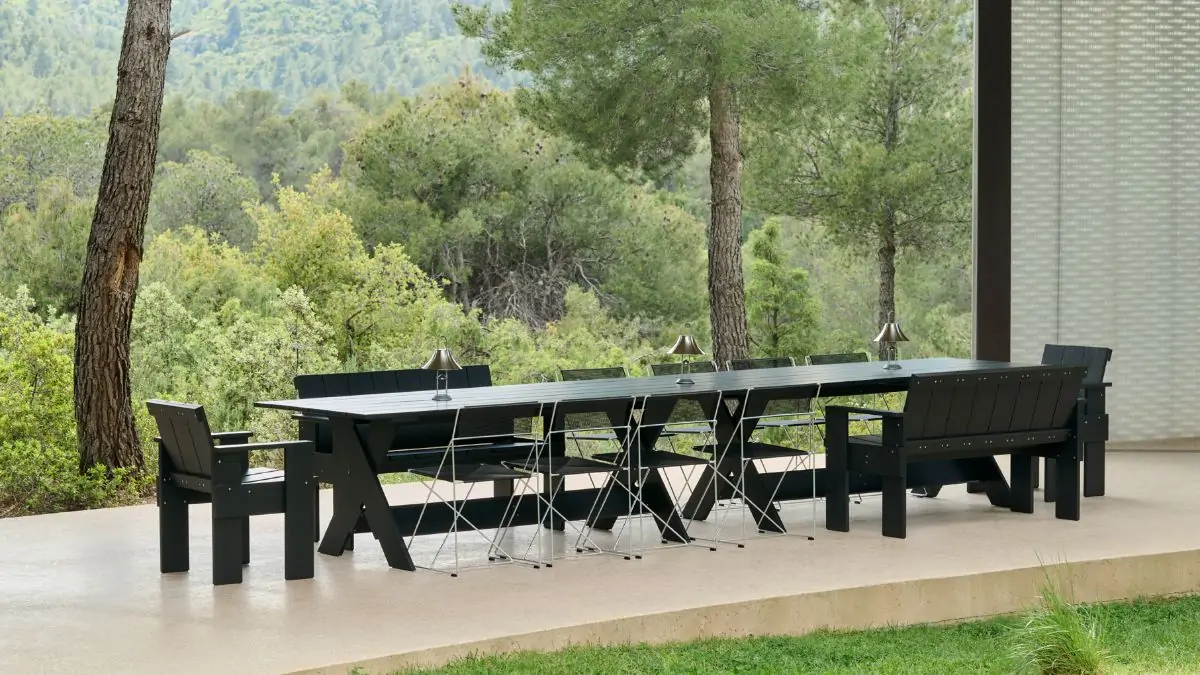 Initially designed to make use of surplus wooden shipping crates by Dutch architect and designer Gerrit Rietveld in 1934, the Crate Collection has been relaunched in a Rietveld Originals x HAY collaboration. Made with respect for the original design, the Crate Dining Table shares the same precisely balanced proportions and transparent construction to minimise production costs and optimise the assembly process. Available in two different lengths, with a rectangular tabletop and diagonal crossbars, the table’s simplicity and spatial design mirrors the designer’s architectural principles – providing functionality and comfort without absorbing space. Crafted in solid pine, with a water-based lacquered finish in different colour options, the Crate Dining Table is suitable for a wealth of outdoor settings.