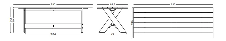 Initially designed to make use of surplus wooden shipping crates by Dutch architect and designer Gerrit Rietveld in 1934, the Crate Collection has been relaunched in a Rietveld Originals x HAY collaboration. Made with respect for the original design, the Crate Dining Table shares the same precisely balanced proportions and transparent construction to minimise production costs and optimise the assembly process. Available in two different lengths, with a rectangular tabletop and diagonal crossbars, the table’s simplicity and spatial design mirrors the designer’s architectural principles – providing functionality and comfort without absorbing space. Crafted in solid pine, with a water-based lacquered finish in different colour options, the Crate Dining Table is suitable for a wealth of outdoor settings.