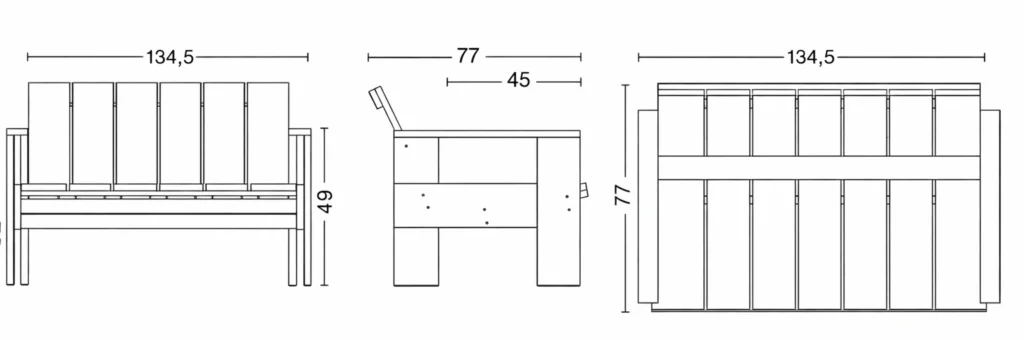 Initially designed to make use of surplus wooden shipping crates by Dutch architect and designer Gerrit Rietveld in 1934, the Crate Collection has been relaunched in a Rietveld Originals x HAY collaboration. Made with respect for the original design, the Crate Lounge Sofa shares the same precisely balanced proportions and transparent construction to minimise production costs and optimise the assembly process. The sofa features low proportions with a gently sloping back and seat with supportive armrests, its simplicity and spatial design mirroring the designer’s architectural principles – providing functionality and comfort without absorbing space. Crafted in solid pine, with a water-based lacquered finish in different colour options, the Crate Lounge Sofa is suitable for a wealth of outdoor settings, and can be supplemented with optional seat cushions in selected textiles for extra comfort.