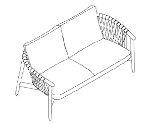 The Crosshatch Outdoor Settee from Geiger creates a feeling of being suspended in comfort. Its latticed parachute cord is interlaced with the settee’s graceful wood frame to create a visually light alternative to standard club seating. This outdoor chair is expertly crafted from durable teak with intricate joinery and its soft cushions, which can be tied down, are upholstered in a weather-resistant fabric.