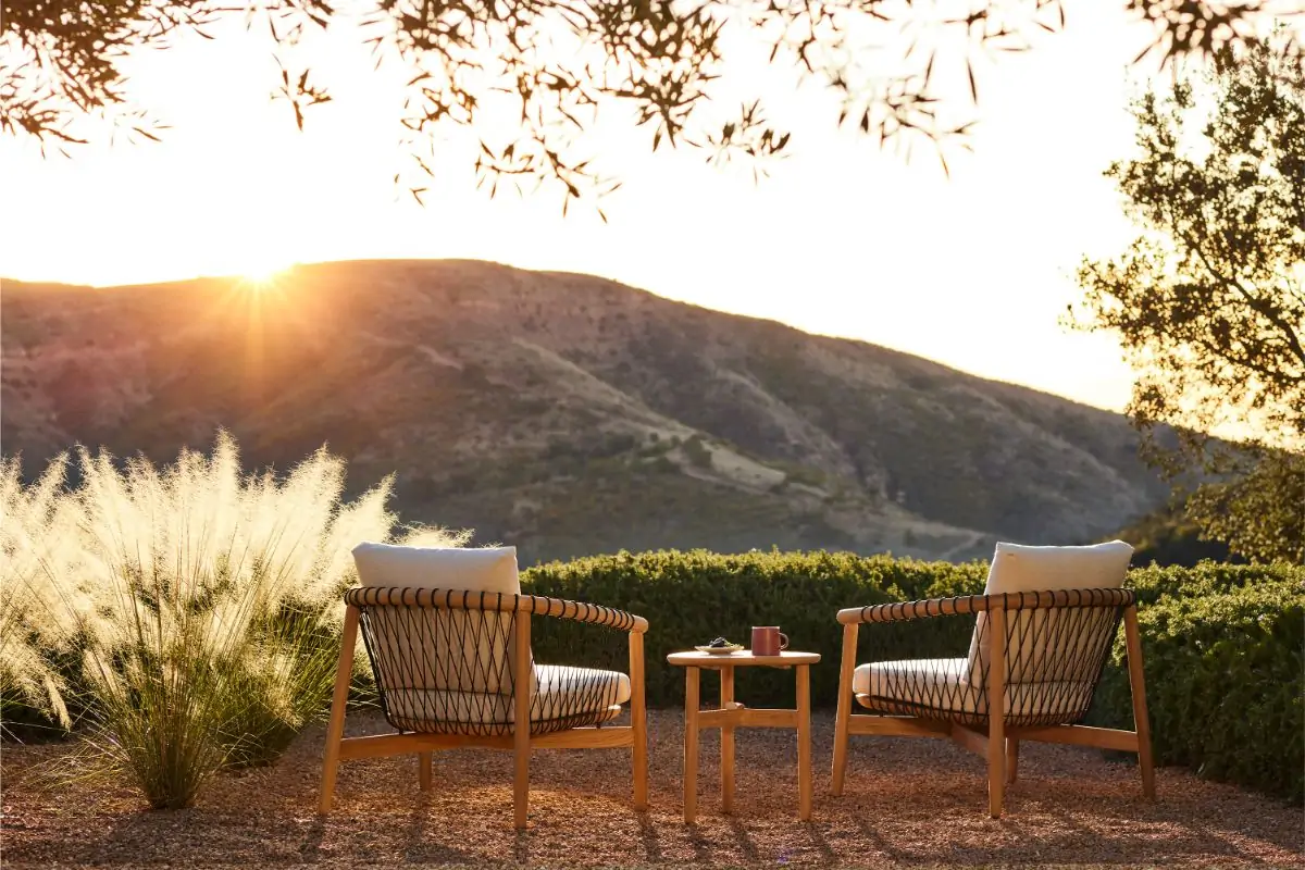 Pair the side table with chair and ottoman or settee, and the family forms an inviting spot to gather outside.