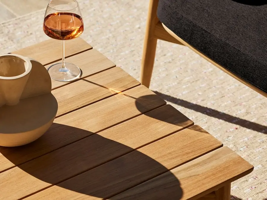 With durable teak, the side table is equipped for rain or shine.