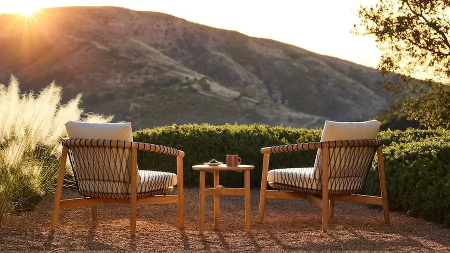 Pair the side table with chair and ottoman or settee, and the family forms an inviting spot to gather outside.