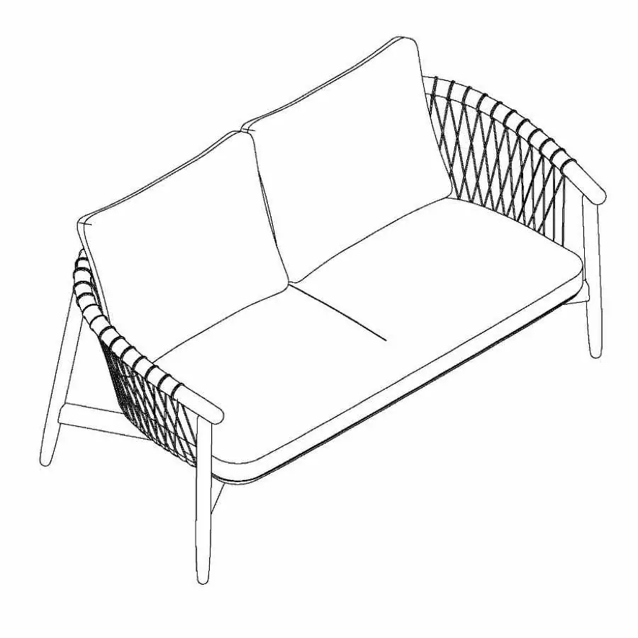 The Crosshatch Settee from Geiger creates a feeling of being suspended in comfort. Its latticed parachute cord is interlaced with the settee’s graceful wood frame to create a visually light alternative to standard club seating and sofas. This settee is expertly crafted from solid wood with intricate joinery and its softly upholstered cushions can be tied down to maintain a trim, tailored aesthetic.