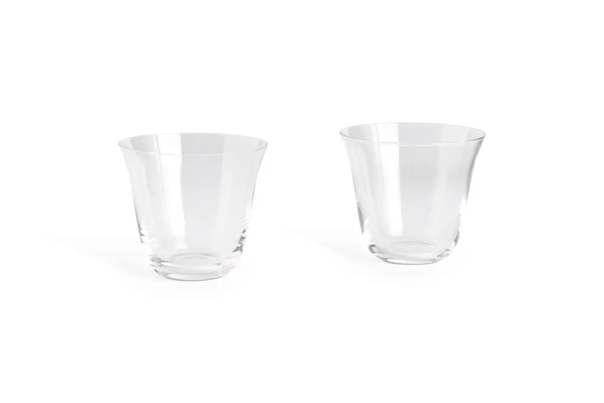 Featuring a distinctive silhouette with outwards-curving lip, the Curve Tumbler Glass offers a blend of simplicity and understated elegance. Handmade from delicate 20% recycled glass, the generous size makes it ideal for serving water, wine, and other drinks. The tumblers come in a set of two and can be used with matching glasses or other HAY tableware to add a refined touch to any table setting or social gathering.