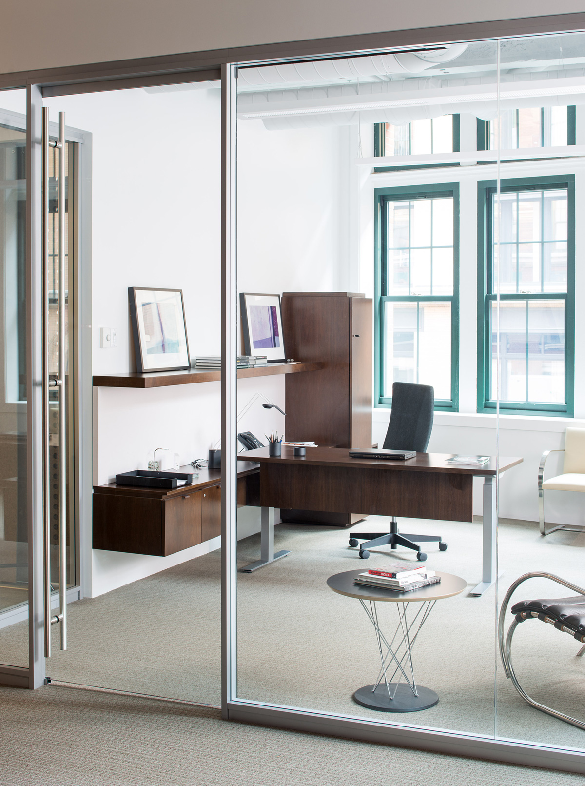 Initially conceived as a rocking stool, Isamu Noguchi’s playful design caught the attention of Hans Knoll who thought it a perfect complement to the Bertoia wire collection. At the suggestion of Hans Knoll, Noguchi adapted the stool into a small table in 1954, and a full size dining table in 1957. The distinctive base features chrome-plated steel wires set into a cast-iron, black porcelain-finished foot. The top is available in white or black laminate.