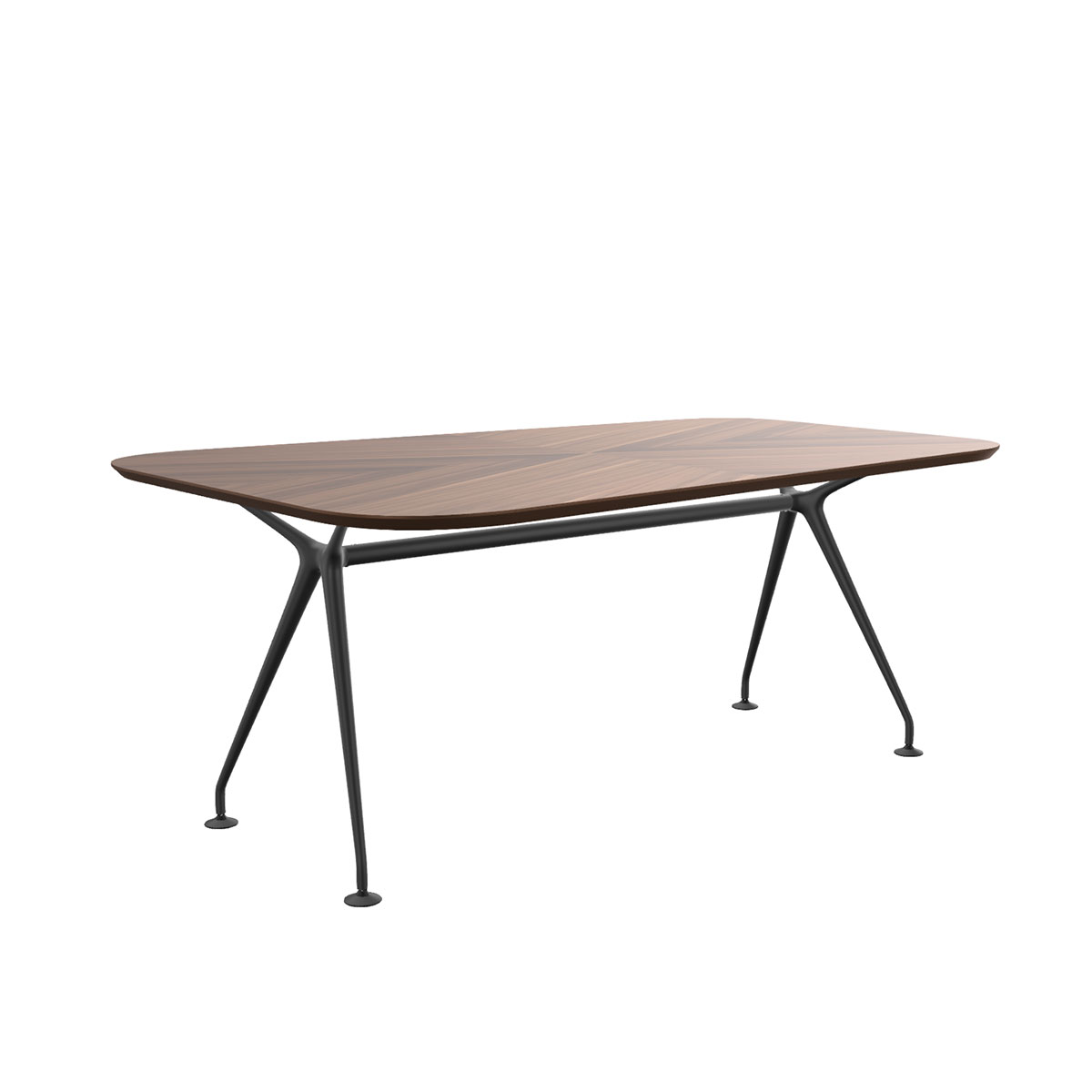 A large table, designed for meeting or dining rooms, Dapper is a refined and practical table that embellishes contract or domestic environments. The top, available in different finishes, is supported by a metal structure of great aesthetic impact.