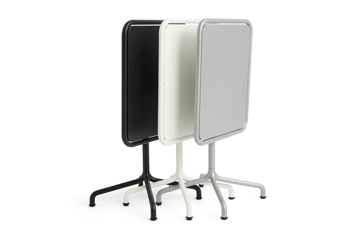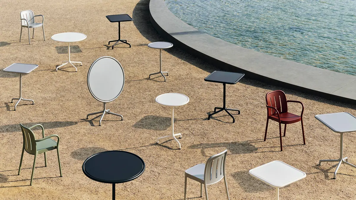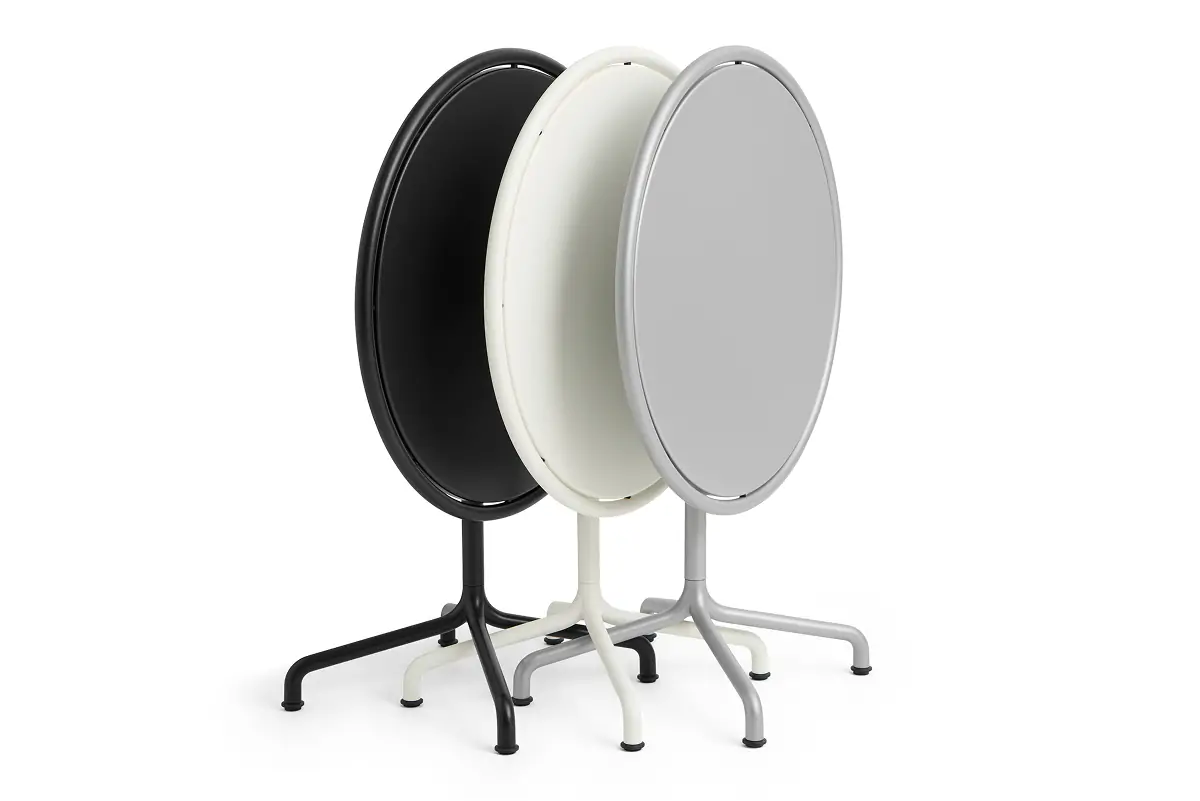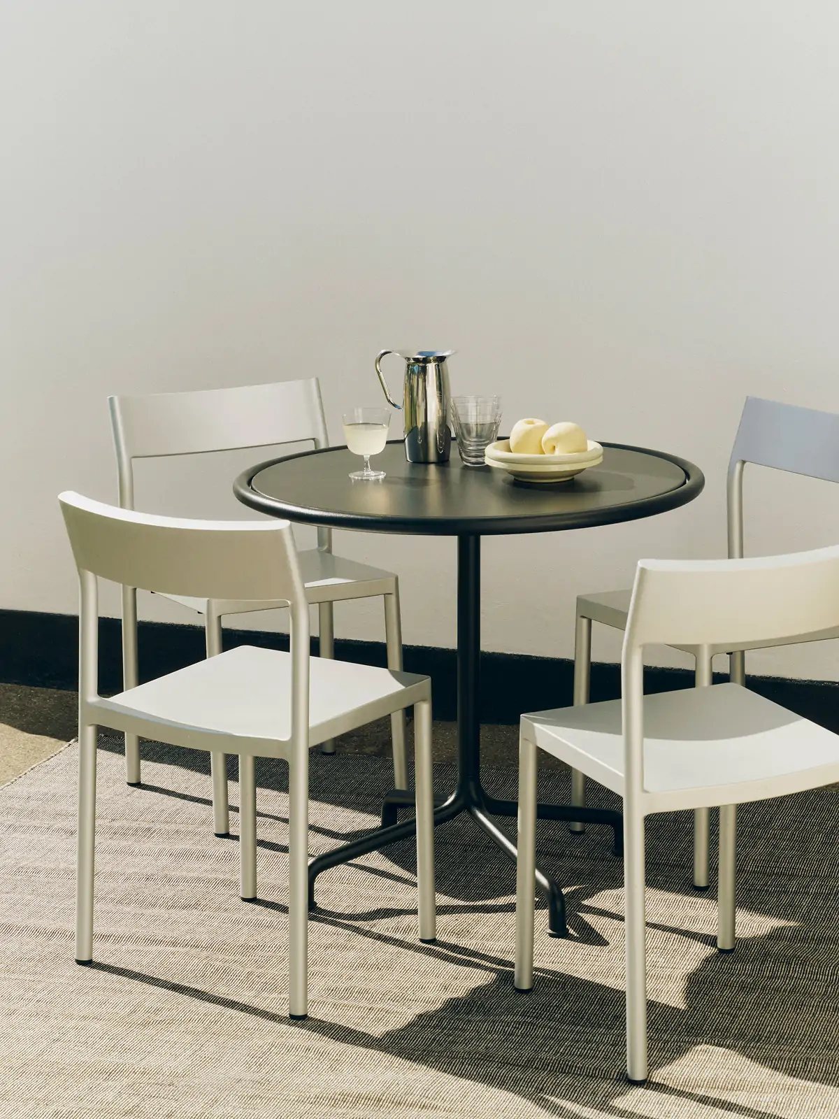A contemporary take on the classic bistro set, Julien Renault’s Deville Table reinterprets a familiar typology for today’s outdoor life. Defined by its generous proportions and softly curved frame, the table balances strength with an open, welcoming character – an invitation to sit, linger, and enjoy time outside. Crafted from at least 60% post-consumer recycled aluminium, the rust-resistant table is built to last, while its tilting top makes it easy to move, fold away, and store. Offered in round or square variants in different sizes and colours, the Deville Table offers practicality with quiet nostalgia, adapting easily to balconies, patios, cafés, terraces, and gardens.