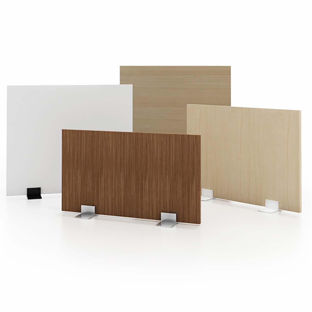 An extensive series of laminate and veneer partitions with applications that delineate space and provide a planning alternative when the need to carry data and utilities is not required.