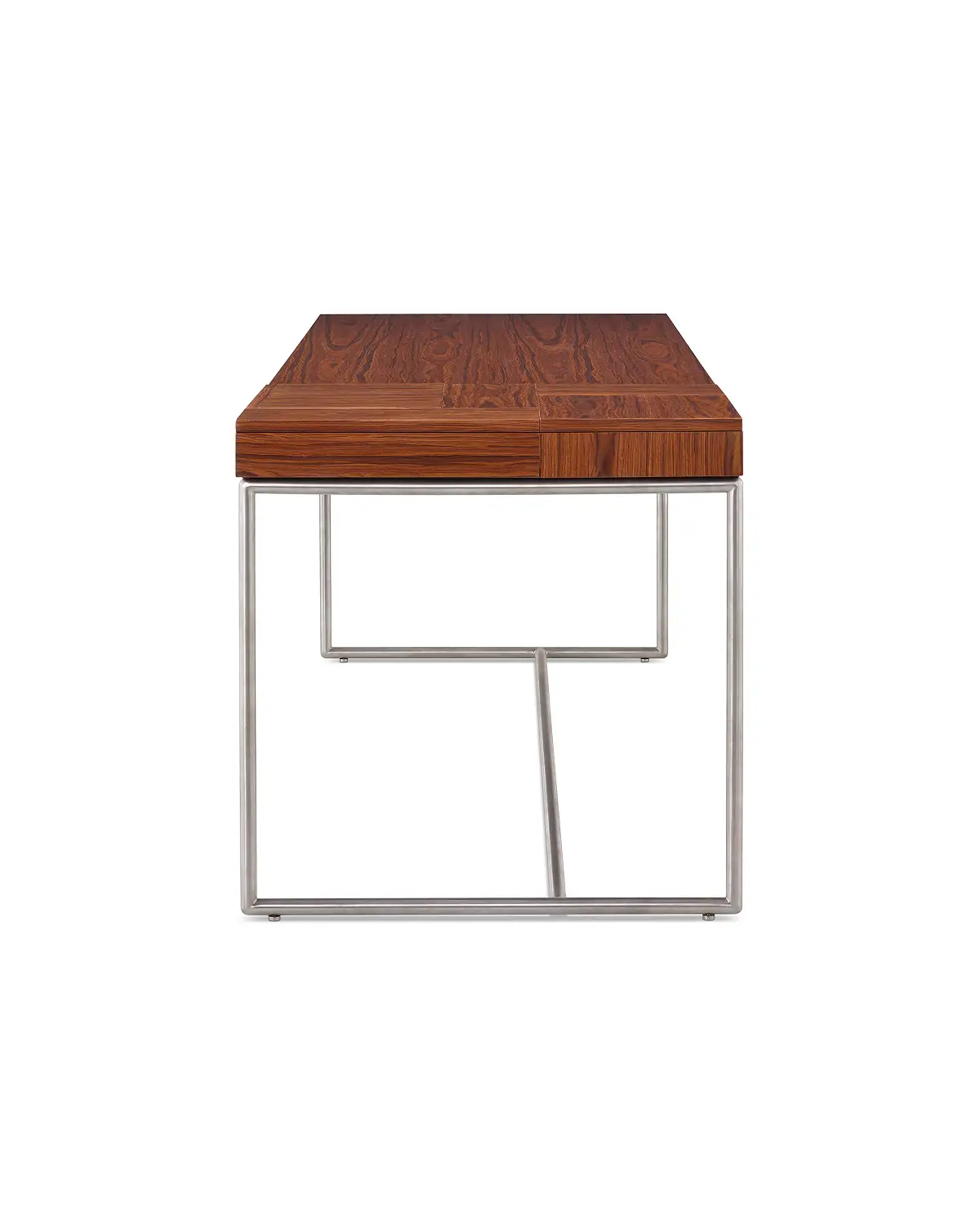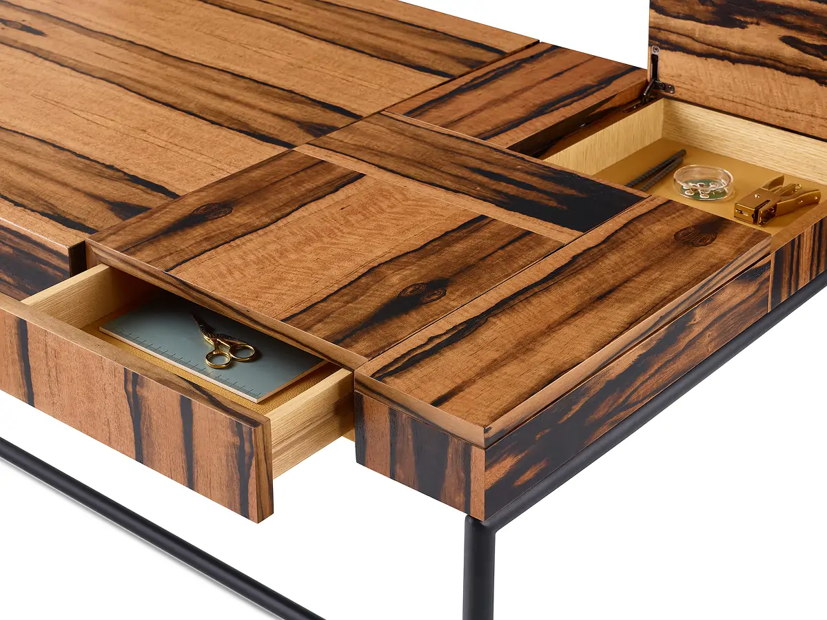 Designed for the private office, Isay Wienfeld’s Domino Desk offers an elegant aesthetic, with clever storage and luxe veneer finishes that complement his Domino family. Optional modular compartments open with a gentle touch to reveal out-of-sight storage. Supported by an open metal base, the prominent work surface invites you to sit and focus on the task at hand.