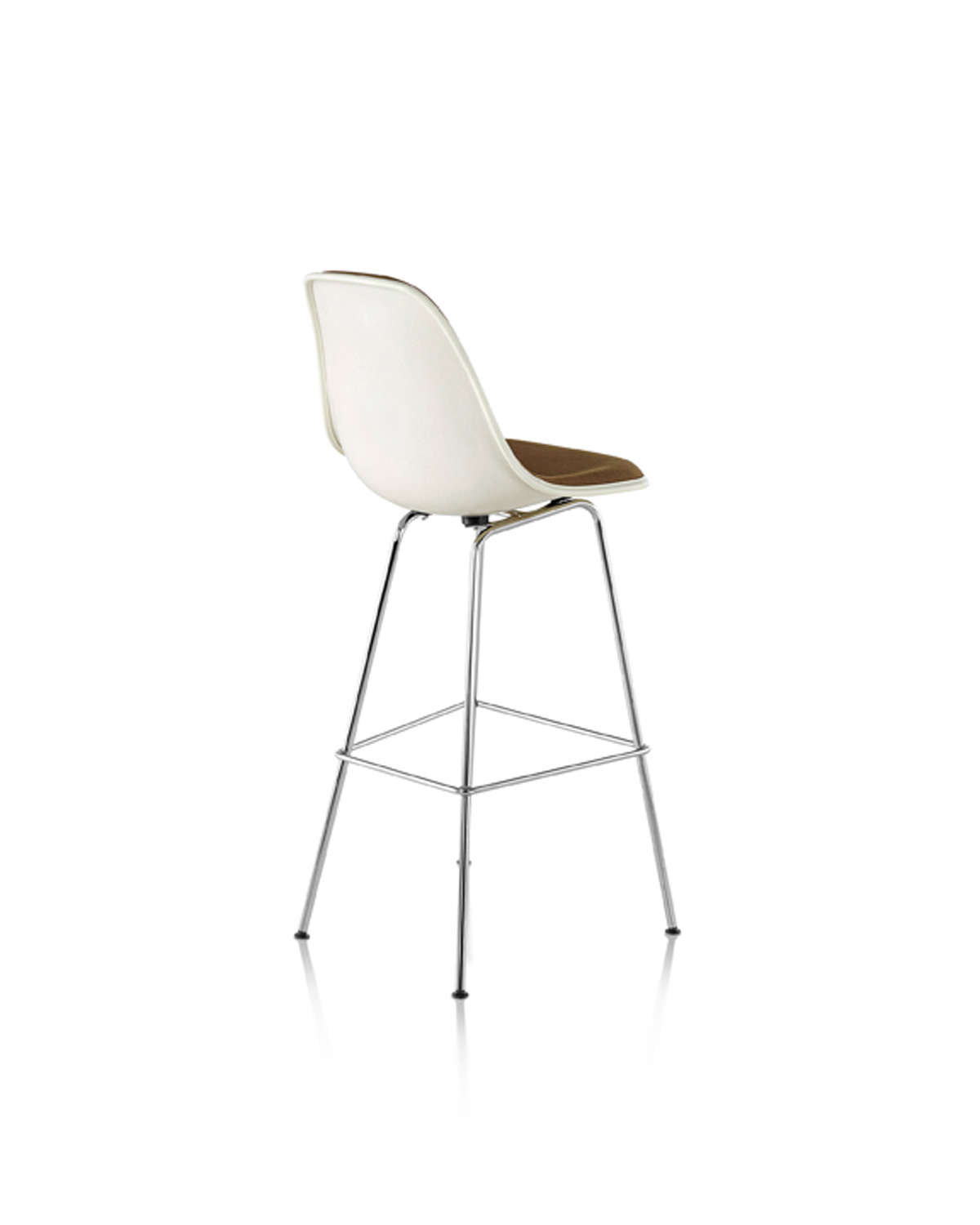 Like the original 1950 Molded Fiberglass Chair, the surface of the Eames Molded Fiberglass Stool features the same surface striation that has made the original chairs a covetable find for vintage collectors for decades. The process for making shells and the nature of fiberglass give each shell unique character traits that may include some surface cavities, areas of lighter or darker color, or faint circular shadows where stool base is attached to shell. Available in a choice of colors, the fiberglass shell can also be fully upholstered in an array of fabrics or outfitted with an upholstered seat pad for enhanced comfort.