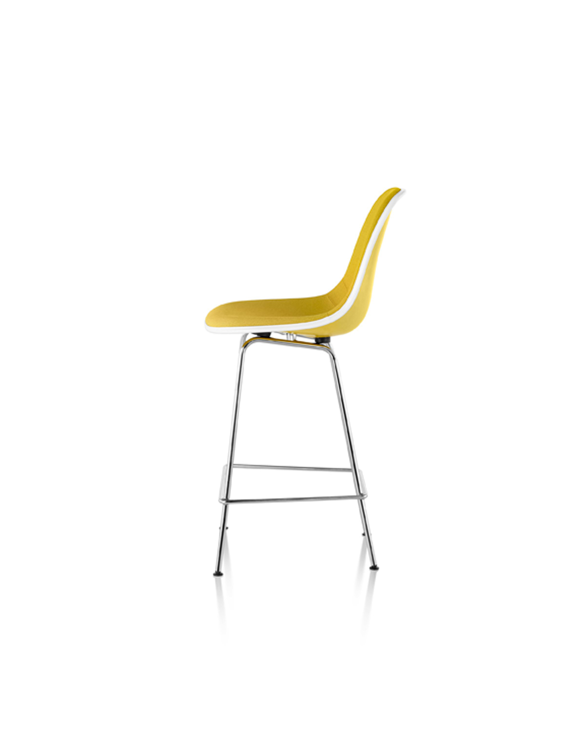 Charles and Ray Eames’ iterative process continually pushed the boundaries of what a single-shell chair could be. The Eames Molded Fiberglass Stool represents the evolution of that process. Thanks to advances in safe fiberglass composition, the Eameses’ distinctive single-shell form is safely produced by means of a less volatile, monomer-free “dry bind” process. A 4-leg base design based on the original 4-leg chair base makes it an ideal seating option at bar- or counter-height surfaces.