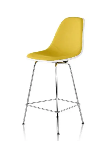 The Eames Fiberglass Stool is a stool version of the iconic Eames Molded Fiberglass Chair originally designed by Charles and Ray Eames for Herman Miller. Its celebrated one-piece shell, with a fiberglass finish and striations, offers a covetable sense of texture to office and hospitality settings. The process for making shells and the nature of fiberglass mean that each shell is unique and can possess traits such as tiny cavities in the surface, small points of lighter or darker color, or faint circular shadows where base attaches to shell. Stools can be customized in a range of fabric options and colors to suit your needs. Best of all, they can be recycled through the Herman Miller Take Back Program.