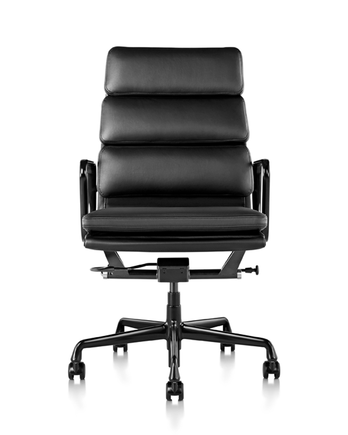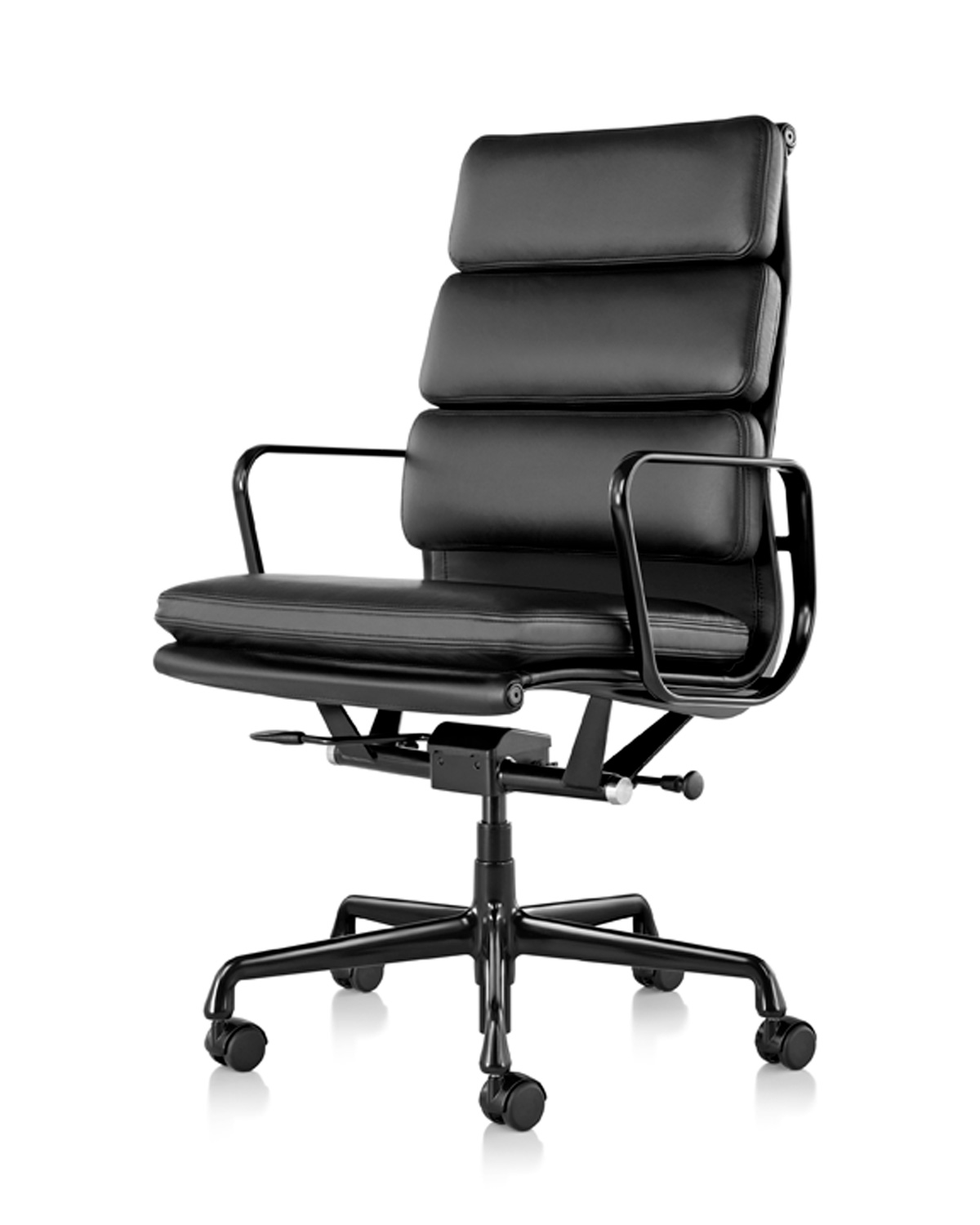 The Eames Soft Pad Chair from Herman Miller provides luxurious comfort. Designed by Charles and Ray Eames with thick foam cushions, the chair’s simple lines, innovative use of materials, swivel feature, and suspension comfort have kept it among the most popular seating choices for offices for more than 50 years.