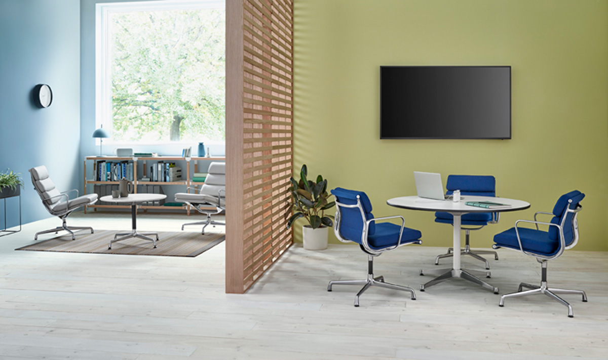 Sophisticated, refined, with a graceful silhouette. Soft Pad chairs are available in a selection of colors, materials, and bases that allow them to sit well in homes and offices.