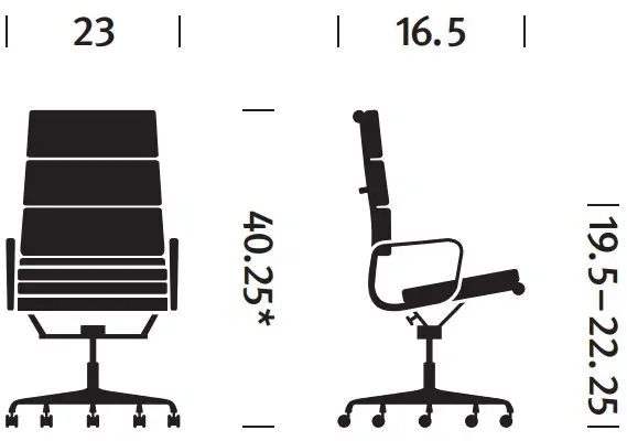 *Adjustable height, +/- 2.5″ Pneumatic