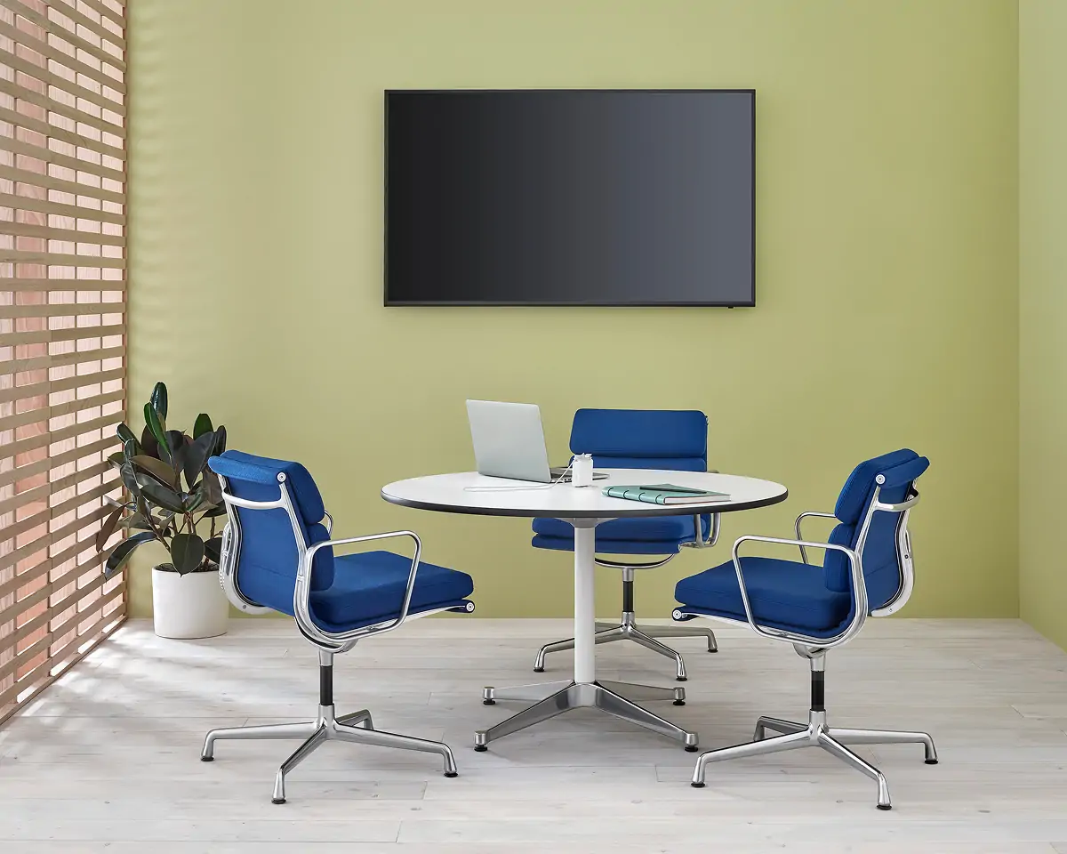 Graceful and versatile, Eames Tables offer a choice of sizes, top shapes and materials, bases, and power options. However they’re configured and wherever they’re used, they bear the signature Eames mark of beauty and utility in design.