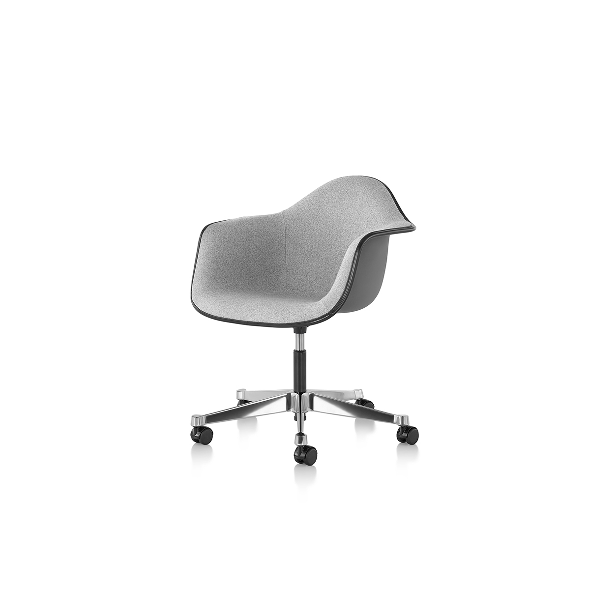 The history of base options made available for the Eames Shell Chair Group is a testament to the Eamesian belief that, as Charles said, “Design addresses itself to the need.” It was the need for stylish, expressive seating for offices that inspired the original 4-star base, which was added as an option in 1953. Updated with a 5-star base, swivel-mounted seat, and height adjustment, today’s Eames Task Chairs can be specified with side chair or armchair shells to support a variety of business needs.
