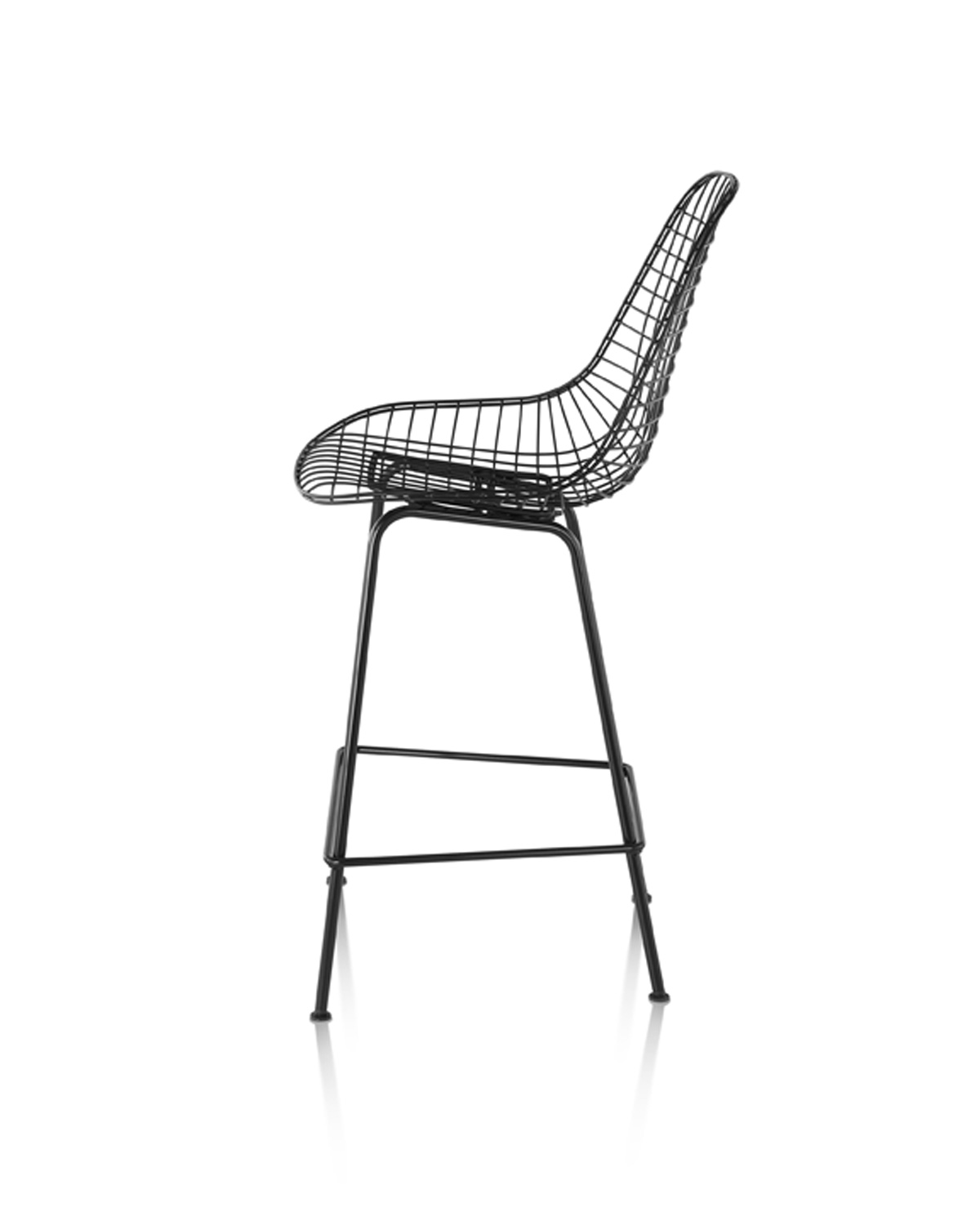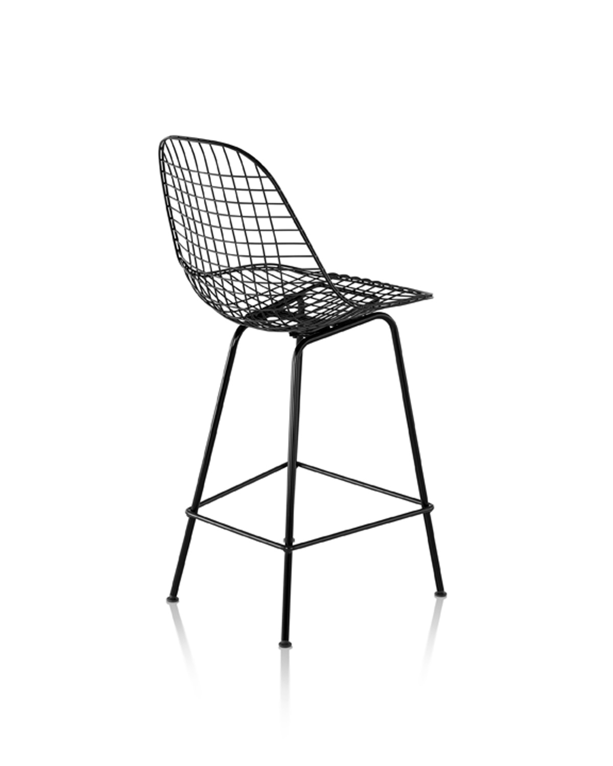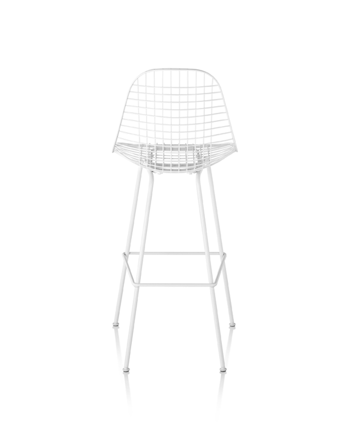It’s in that spirit that the Eames Wire Chair, itself a result of experiments with bent and welded wire during the 1950s, has been introduced as a stool. A light, airy form, the Eames Wire Stool is available in a choice of finishes, bar- or counter-heights, and with optional seat pad or two-piece leather “bikini” pad.