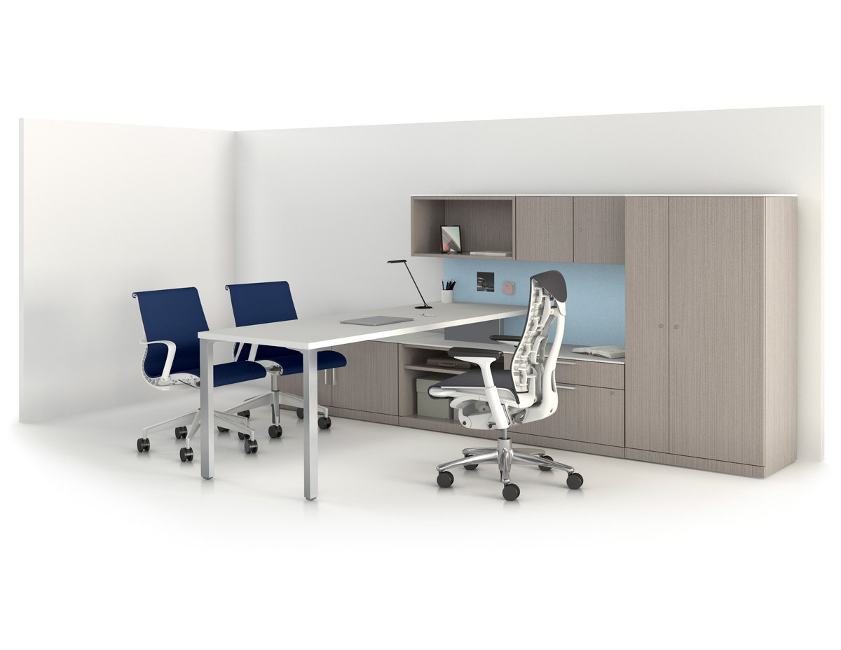 The Embody Chair from Herman Miller blends art and science. Designed with input from more than 30 physicians and PhDs, its signature spinal design allows natural alignment to the backrest, while the matrix of pixels in the seat and back automatically conform to the body’s micro-movements. Built for the way we work today, this modern office chair sets the benchmark for pressure distribution and support.