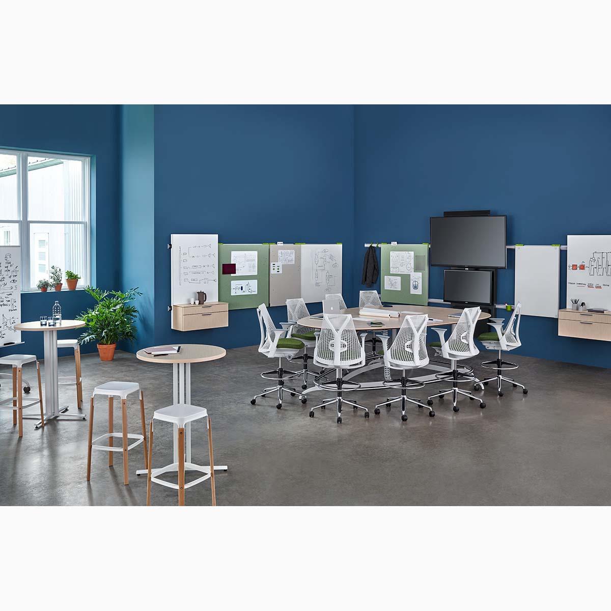 People have always gathered to solve complex problems and generate big ideas. Yet today the stakes are higher, as more organizations rely on innovative thinking for success. Exclave addresses this need by equipping people to be more effective. It’s a thoughtfully cohesive suite of products—from boards that stack, to carts that move them, to tables and rail-hung tools that get everyone involved. Together, these products let people and teams collaborate to develop and share their work more fluidly and spontaneously across the office landscape.