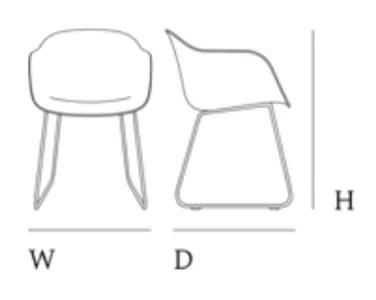 The chair’s clean sculptural language, paired with its wide seat, refuses to compromise on comfort and invites the user to be seated for hours on end. Through soft upholstery and the fixed cushion of its seat, the Fiber Chair enhances the idea of grand comfort.