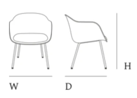 The chair’s clean sculptural language, paired with its wide seat, refuses to compromise on comfort and invites the user to be seated for hours on end. Through soft upholstery and the fixed cushion of its seat, the Fiber Chair enhances the idea of grand comfort.