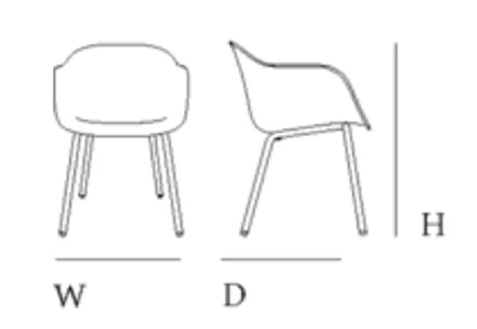 The chair’s clean sculptural language, paired with its wide seat, refuses to compromise on comfort and invites the user to be seated for hours on end. Through soft upholstery and the fixed cushion of its seat, the Fiber Chair enhances the idea of grand comfort.