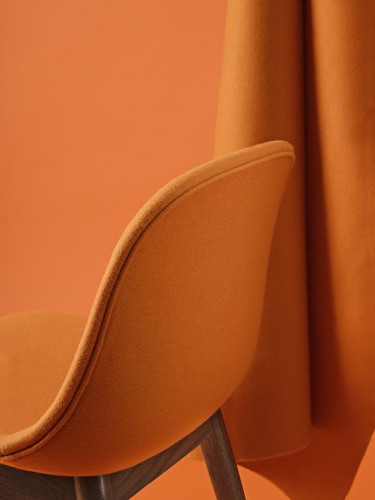 The chair’s clean sculptural language, paired with its wide seat, refuses to compromise on comfort and invites the user to be seated for hours on end. Through soft upholstery and the fixed cushion of its seat, the Fiber Chair enhances the idea of grand comfort.