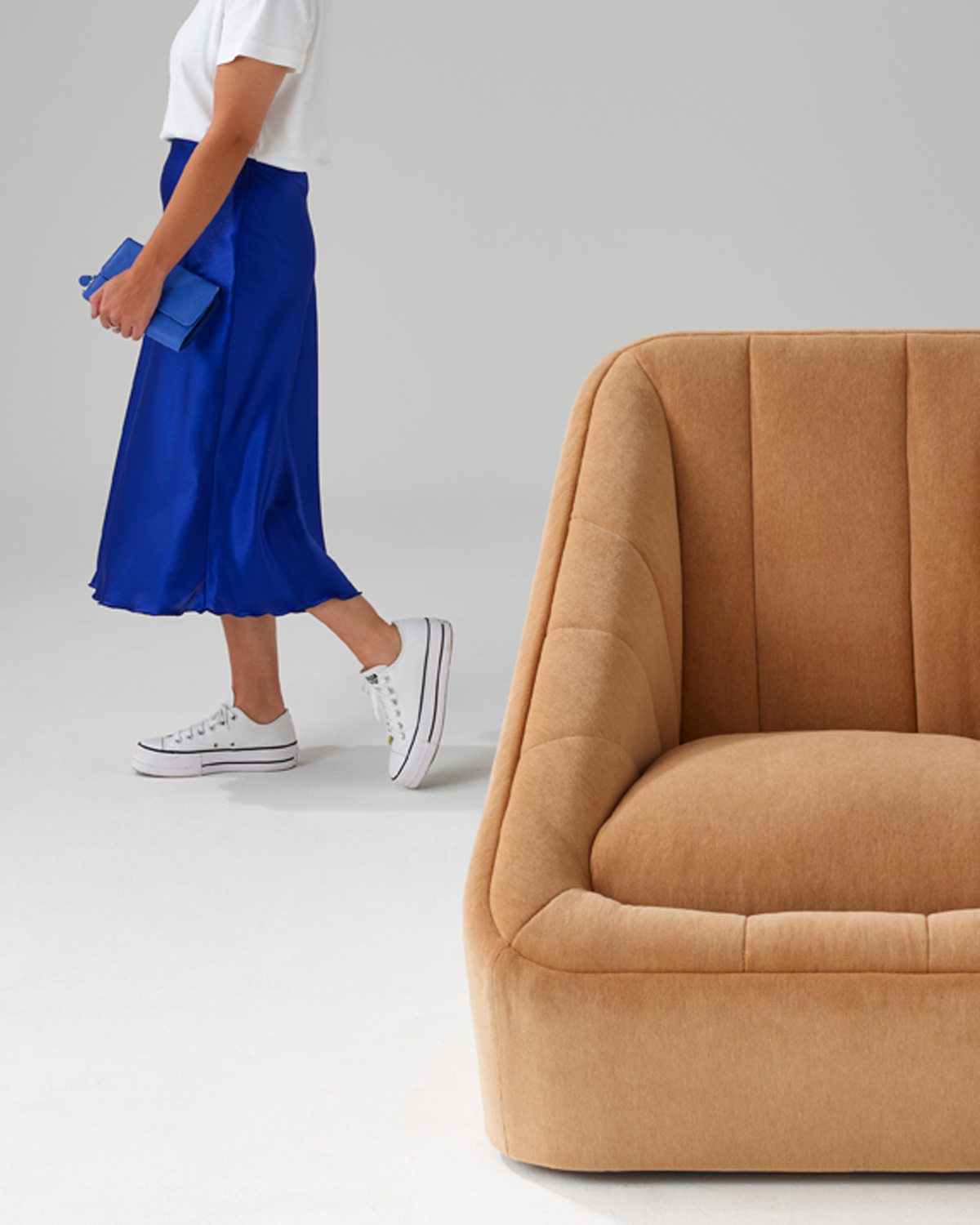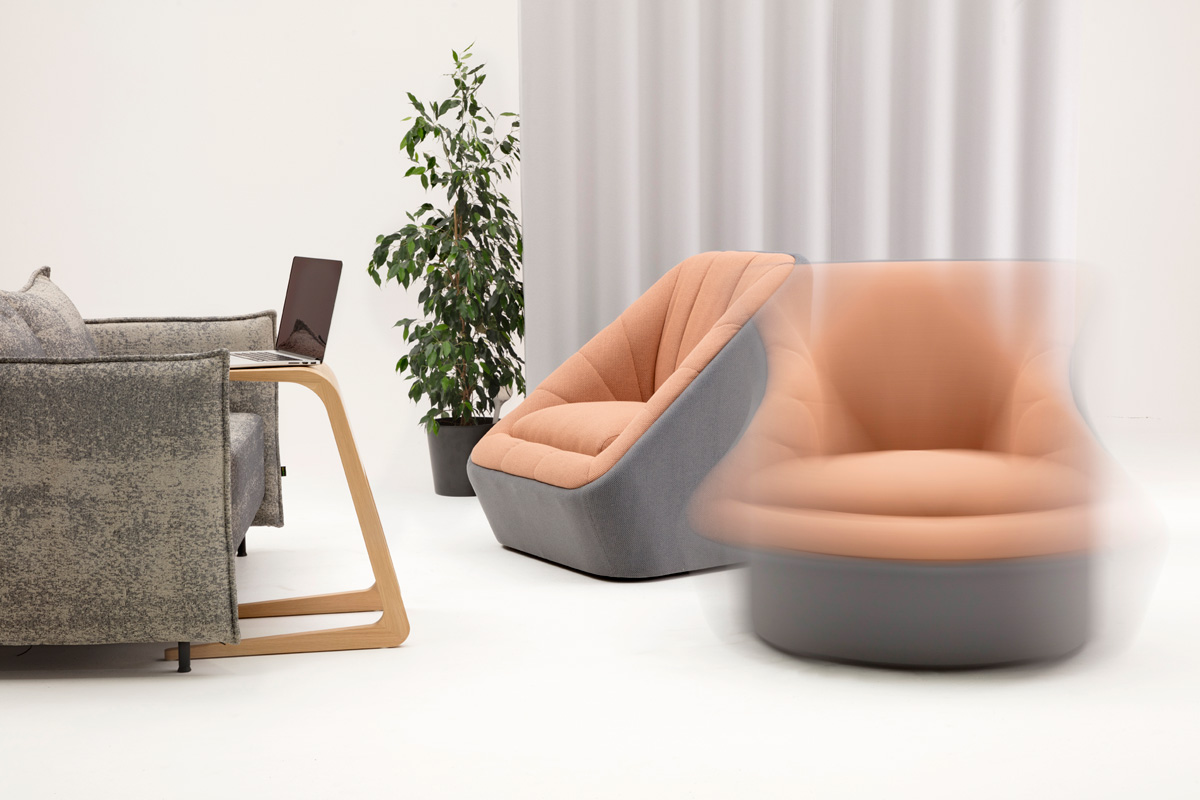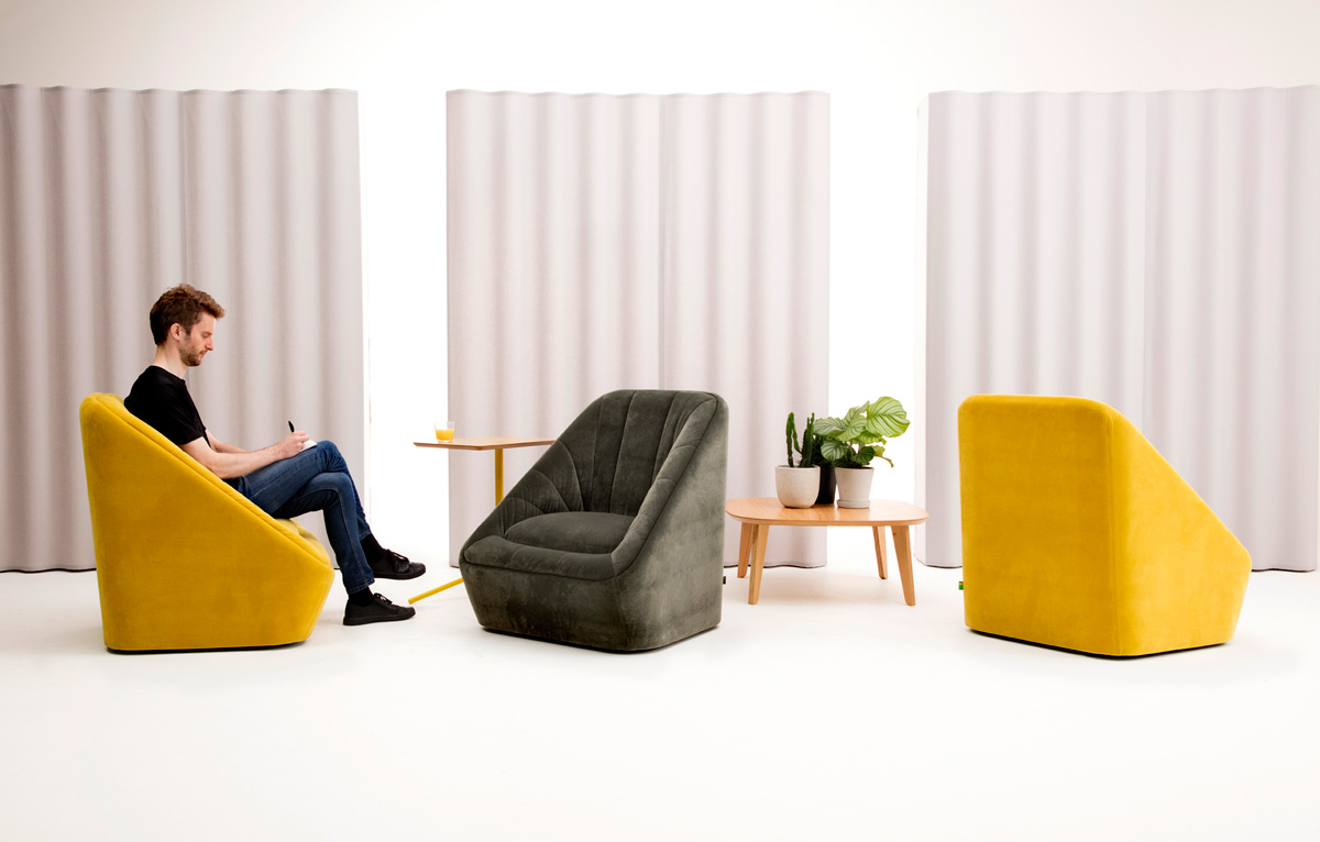 Fiji comes in two- and three-seat sofa versions and a one-seater chair featuring an optional hidden swivel base. Upholster Fiji in one colour selected from NaughtOne’s famously expansive CMF choices, or in dual tones for extra personality.