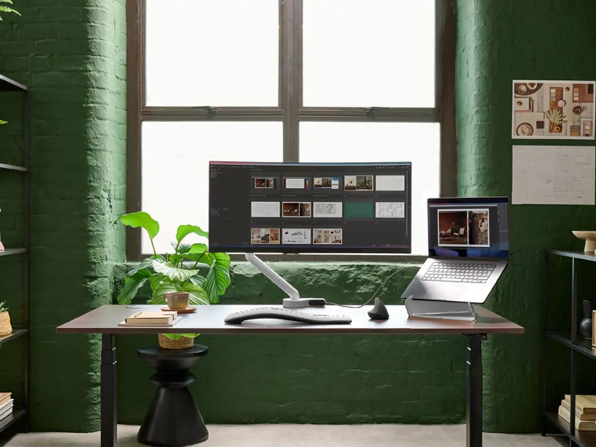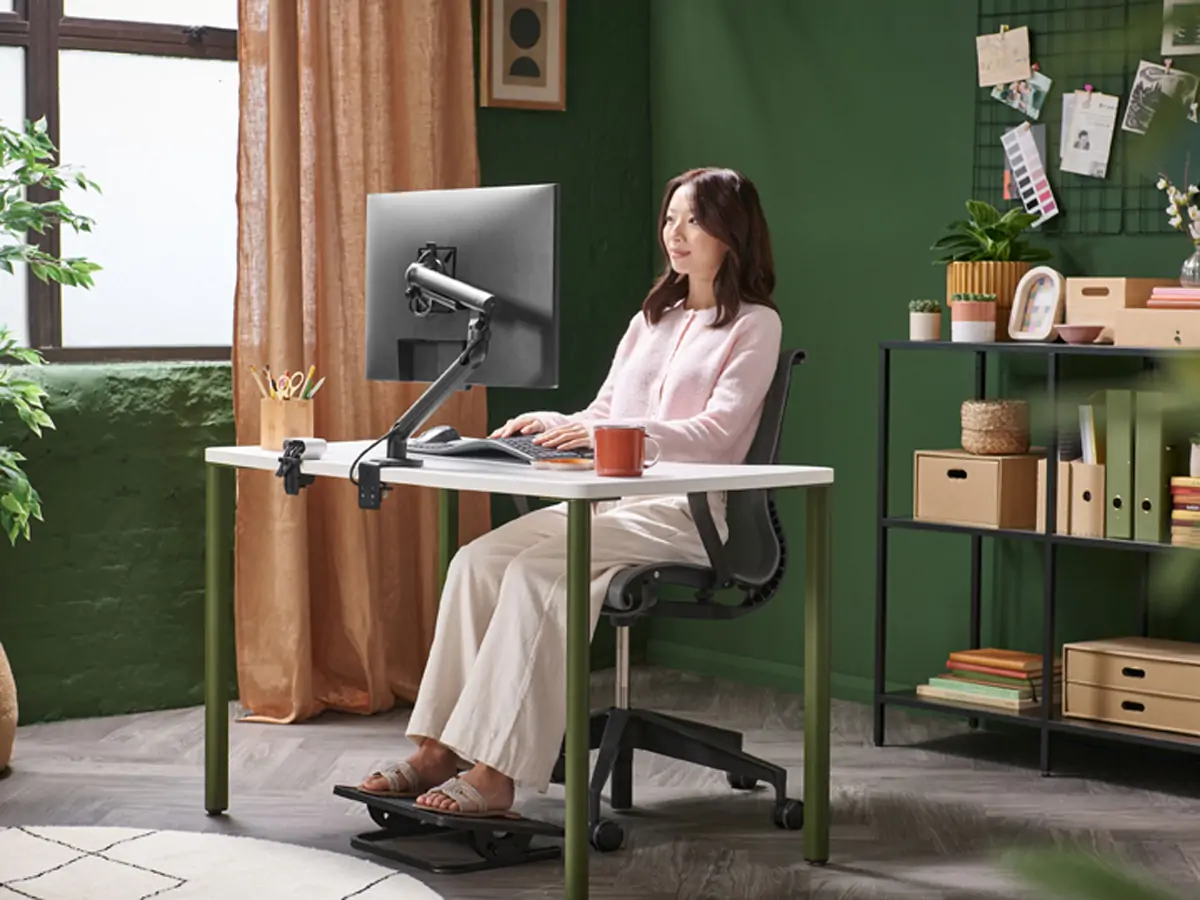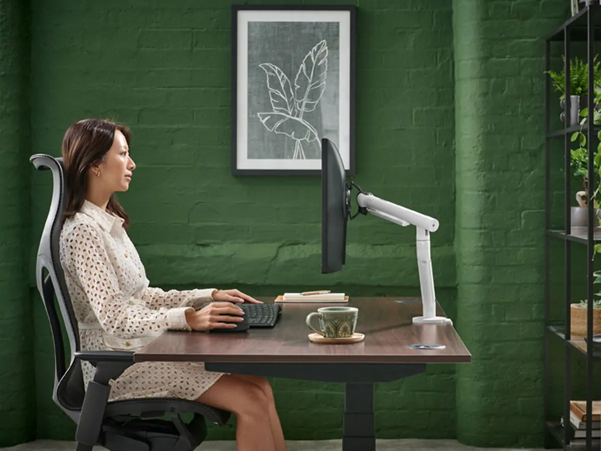 The sleek, minimal design features an innovative dual-rate spring system, allowing Flo to support the next generation of monitors with varying weights and sizes.