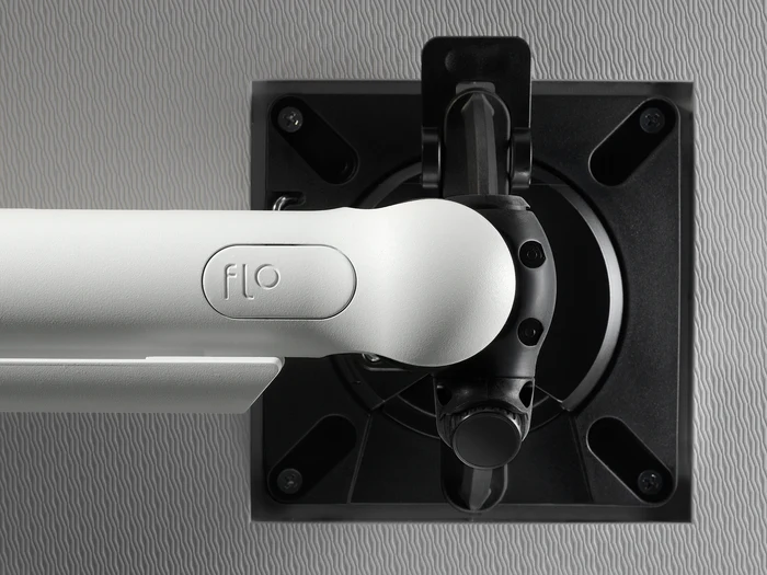 The sleek, minimal design features an innovative dual-rate spring system, allowing Flo to support the next generation of monitors with varying weights and sizes.