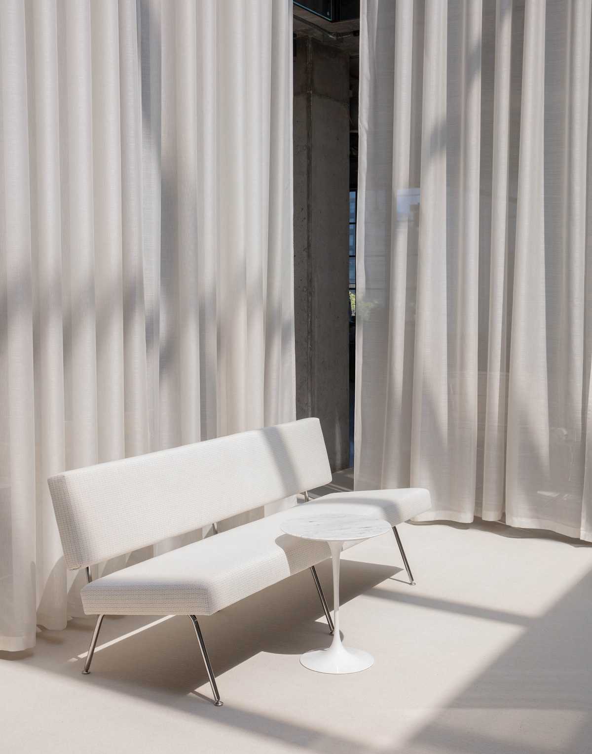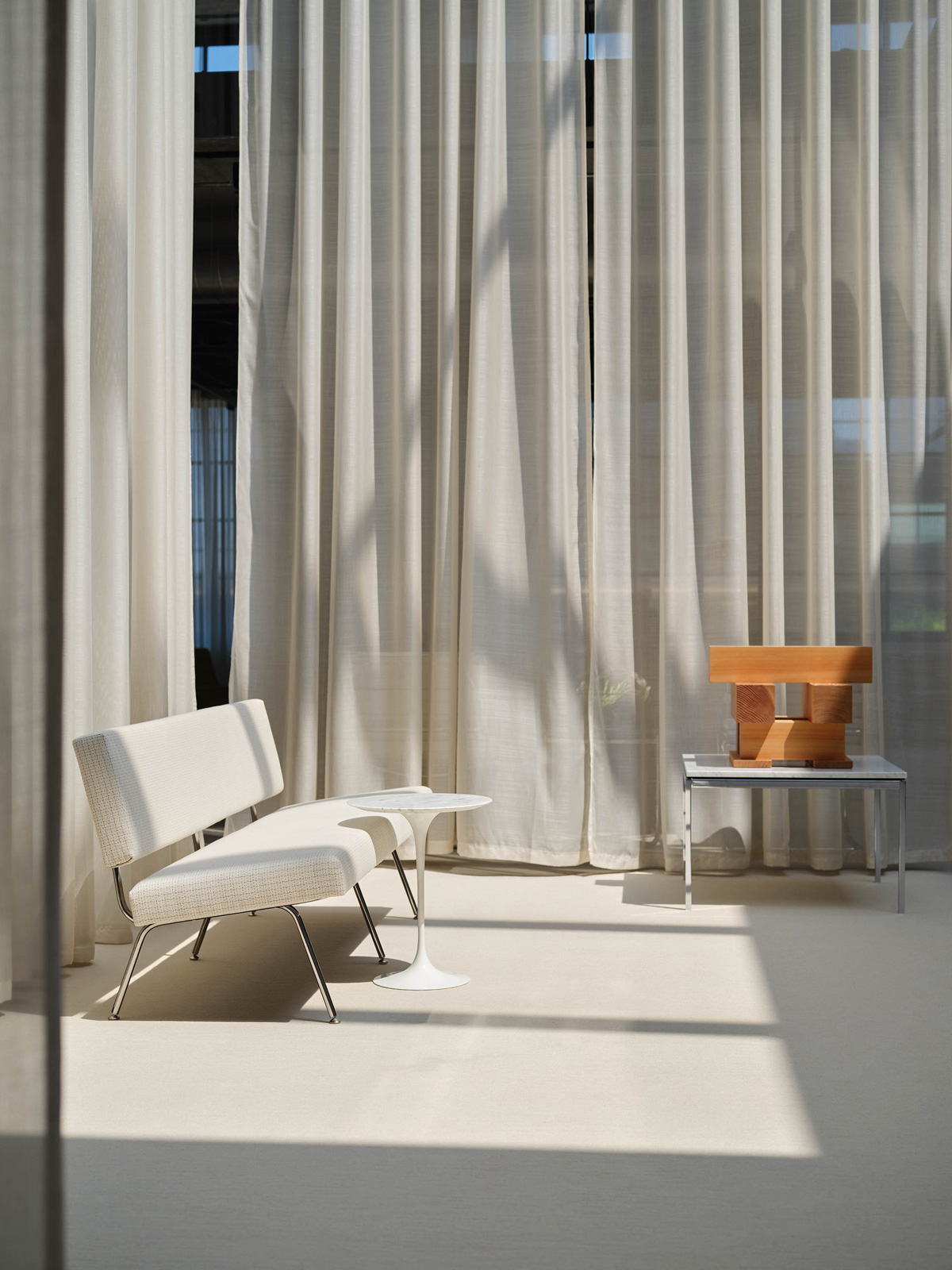 Florence Knoll’s experience leading the Knoll Planning Unit led to a holistic understanding of interiors and special attention to scale and proportion in her furniture designs. She understood the importance of comfort and pursued it with the same exacting perfectionism that gave all her designs their trademark precision and style.