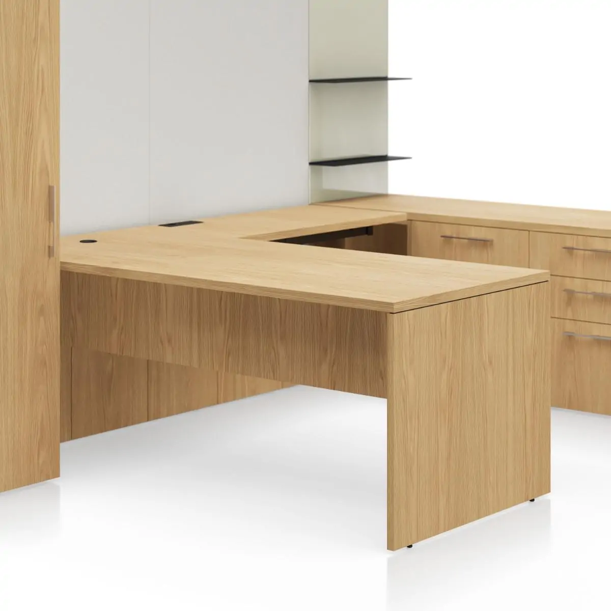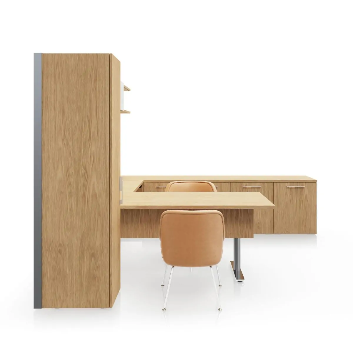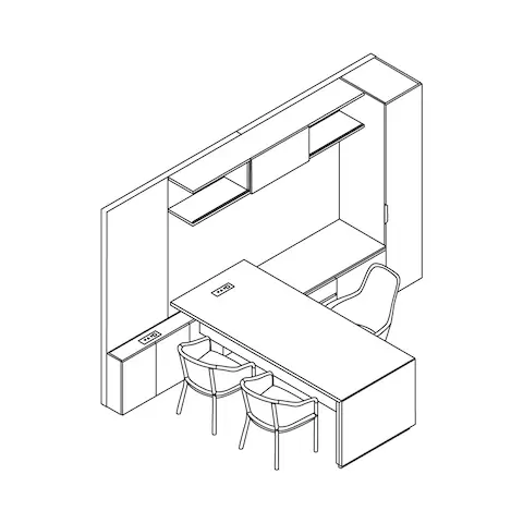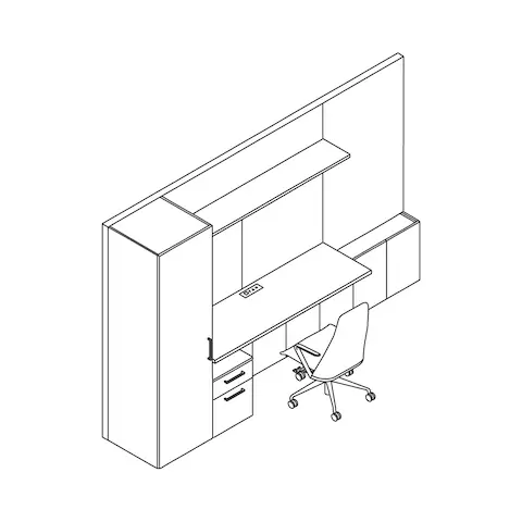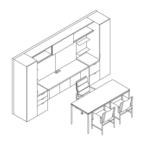 Broad in its ability to store work-related and personal items in private offices, Geiger One’s storage can be customized to suit many needs due to its large variety of standard options. It can organize basic office items like files, books, and writing utensils while providing a high level of amenities with upgrades like built-in cooling drawers, a lit wardrobe for coats and bags, and in-drawer power to charge your devices. Also, discreetly store printers, trash, and recycling bins with convenient access.
