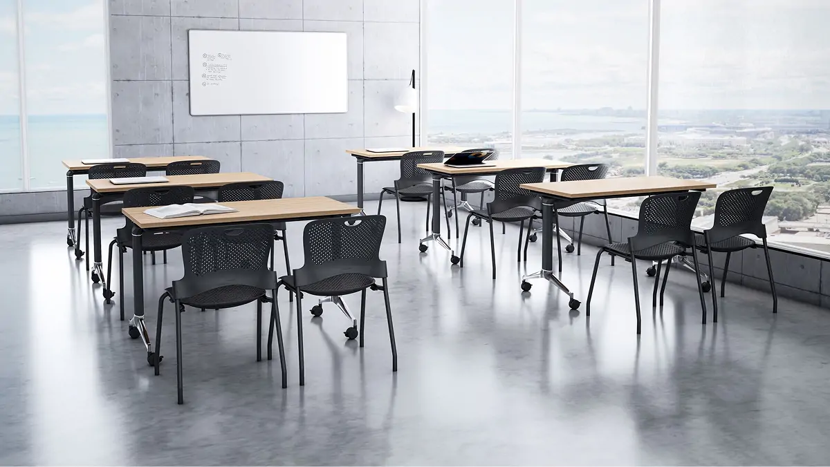 With its intuitive flip-top table surface, this is the vital piece every office needs. Simply pull the lever and the table top flips to vertical in seconds, making it easy to transport the table wherever it’s needed in the office.
