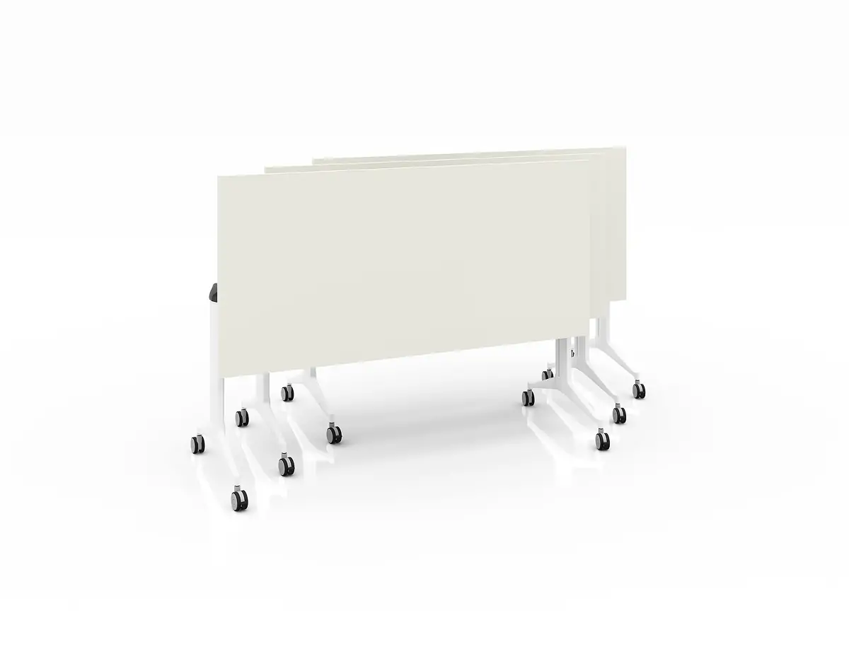 Genus family is the Flip-Top Rectangular Table. Set on castors, this table is ready to shift from space to space, and from spontaneous interaction to formal presentation, in an instant.
