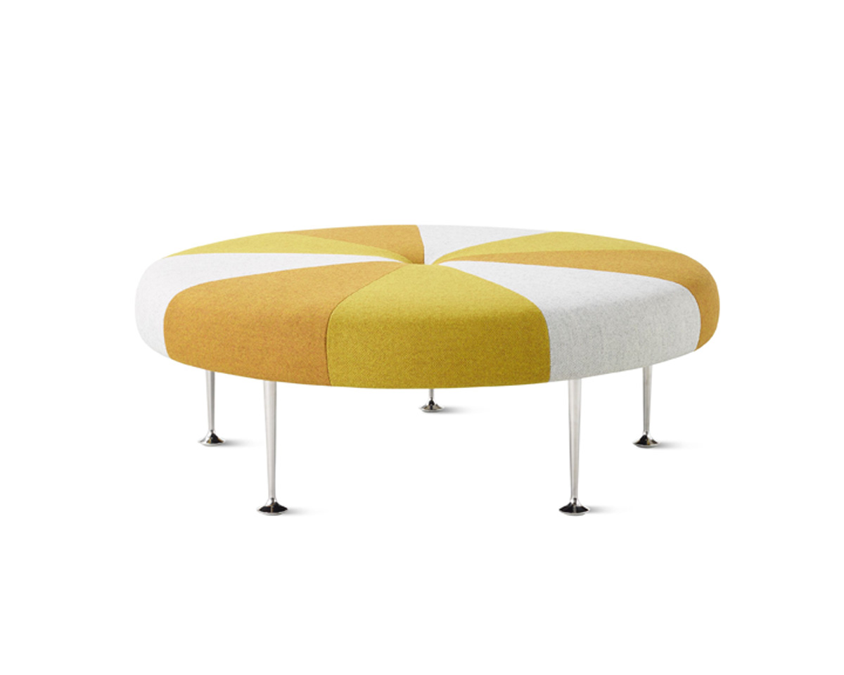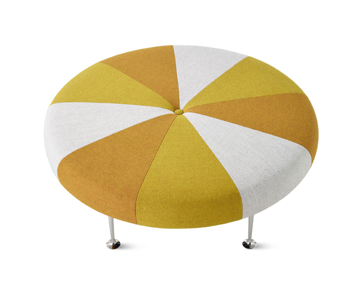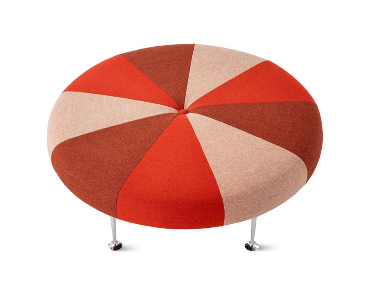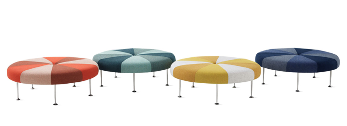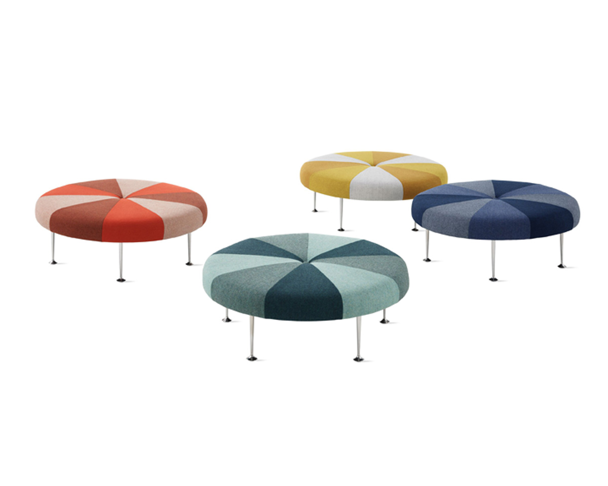 The Girard Color Wheel Ottoman from Herman Miller brings playfulness to lobbies and common areas with a pinwheel of color. Offered in a range of color combinations, this low, upholstered ottoman can also be used as an impromptu table surface.