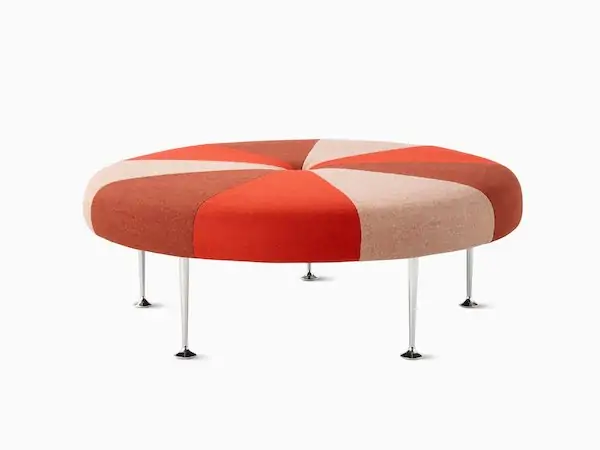 The Girard Color Wheel Ottoman from Herman Miller brings playfulness to lobbies and common areas with a pinwheel of color. Offered in a range of color combinations, this low, upholstered ottoman can also be used as an impromptu table surface.