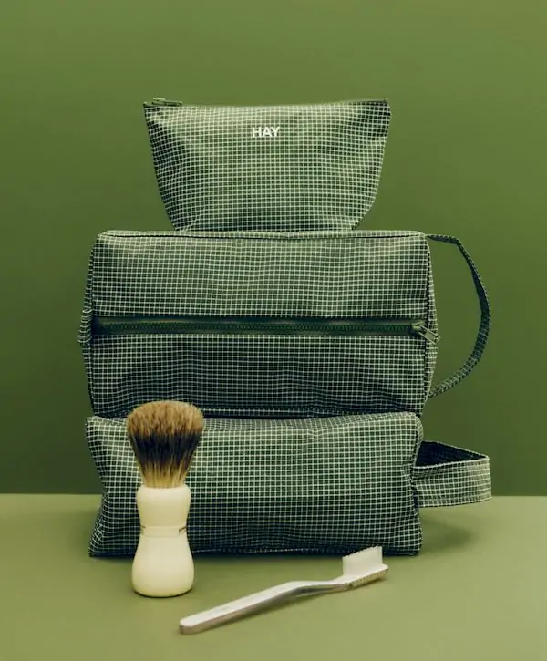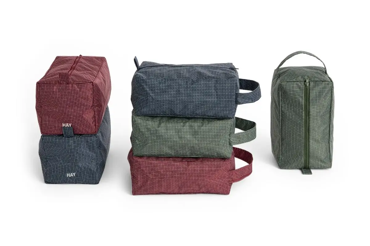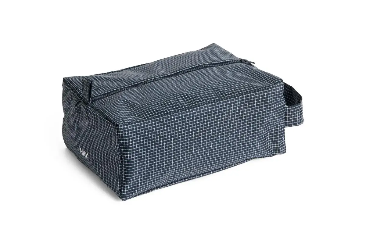 HAY’s Grid wash bag is a traveller’s best companion and equally stylish company at home. The compact yet surprisingly spacious Grid pouch neatly stores cosmetics, makeup, toothbrushes, and toothpaste as well as small accessories. The Grid toiletry bag is made from a blend of recycled nylon and recycled polyester, and closes securely with a zipper.